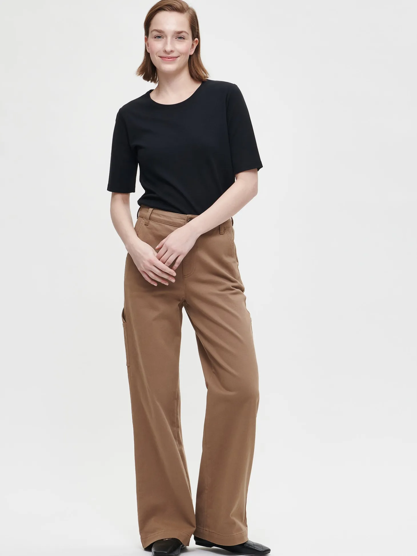 Naisten tyylikäs musta Aina T-paita. Klassinen t-paita on arjen monipuolinen luottovaate, johon on aina helppo pukeutua. Istuvassa T-paidassa on tereellä viimeistelty pyöreä pääntie. Hihat ovat 2/4 -mittaiset. T-paidan pituus koossa M on noin 62 cm. Materiaali on miellyttävän tuntuista, paksumpaa interlock-neulosta.