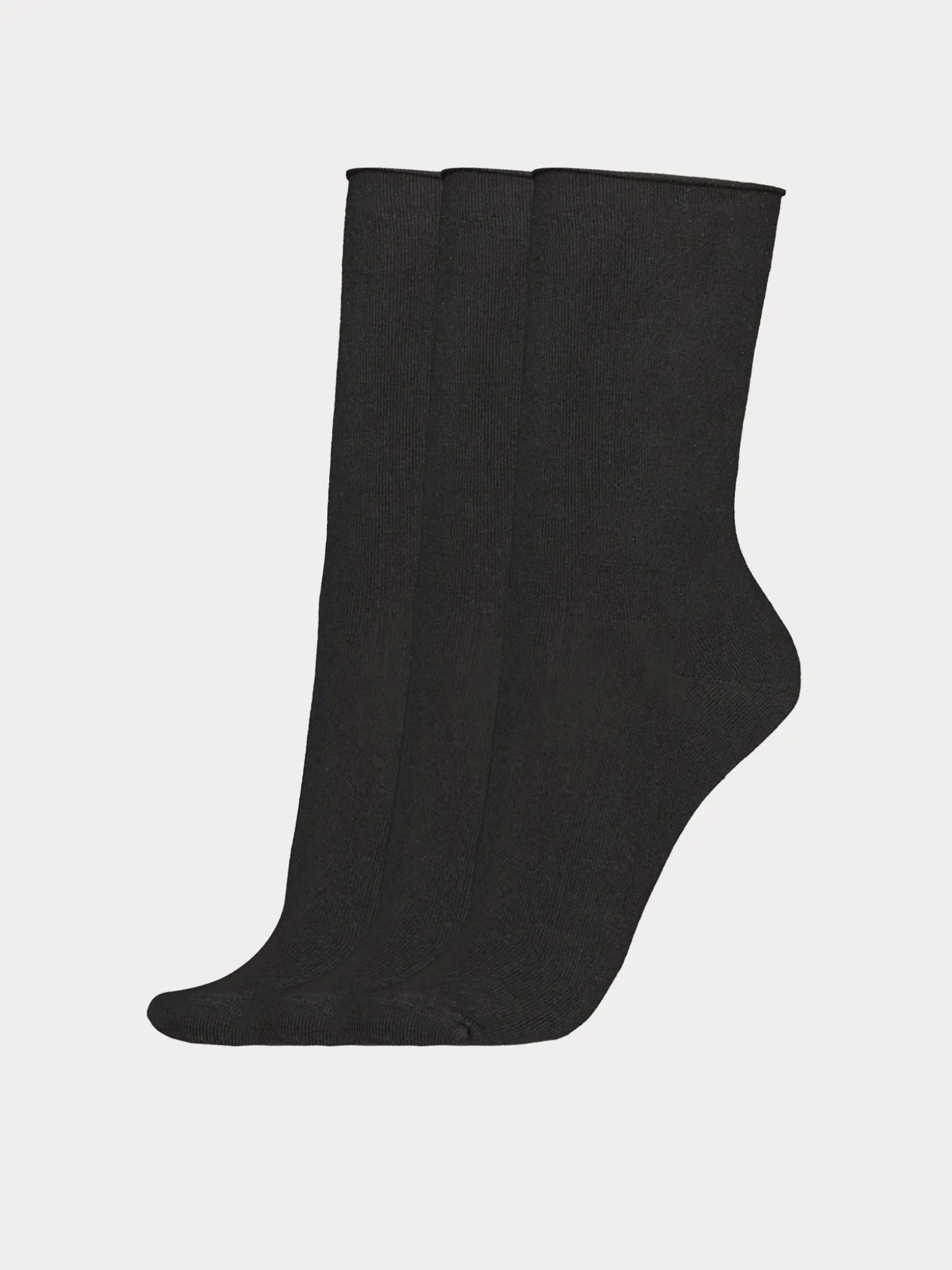 Voguen rullareunaiset nilkkasukat bambusekoitteesta saumattomalla kärjellä. Bambun ansiosta sukat ovat silkinpehmeät, hengittävät ja luonnollisesti lämpöä säätelevät. Paketissa on 3 paria sukkia.