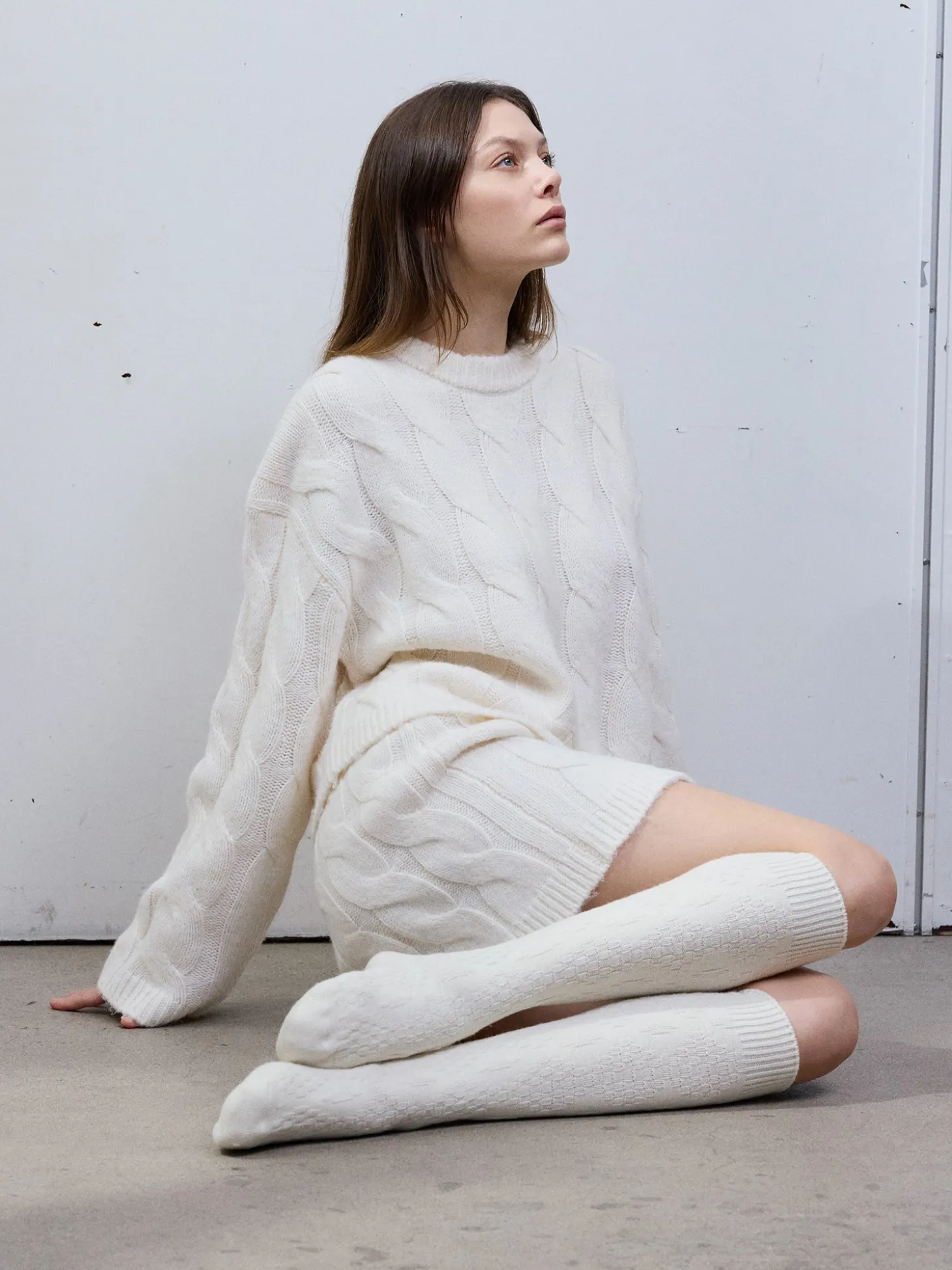 Voguen suloisuudellaan ihastuttavat ja lämmittävät villasekoite Ciana polvisukat kauniilla kuvioinnilla. Polvisukat ovat täydelliset syksyn kylmeneviin iltoihin. Polvisukat tulevat rusettipakkauksessa.