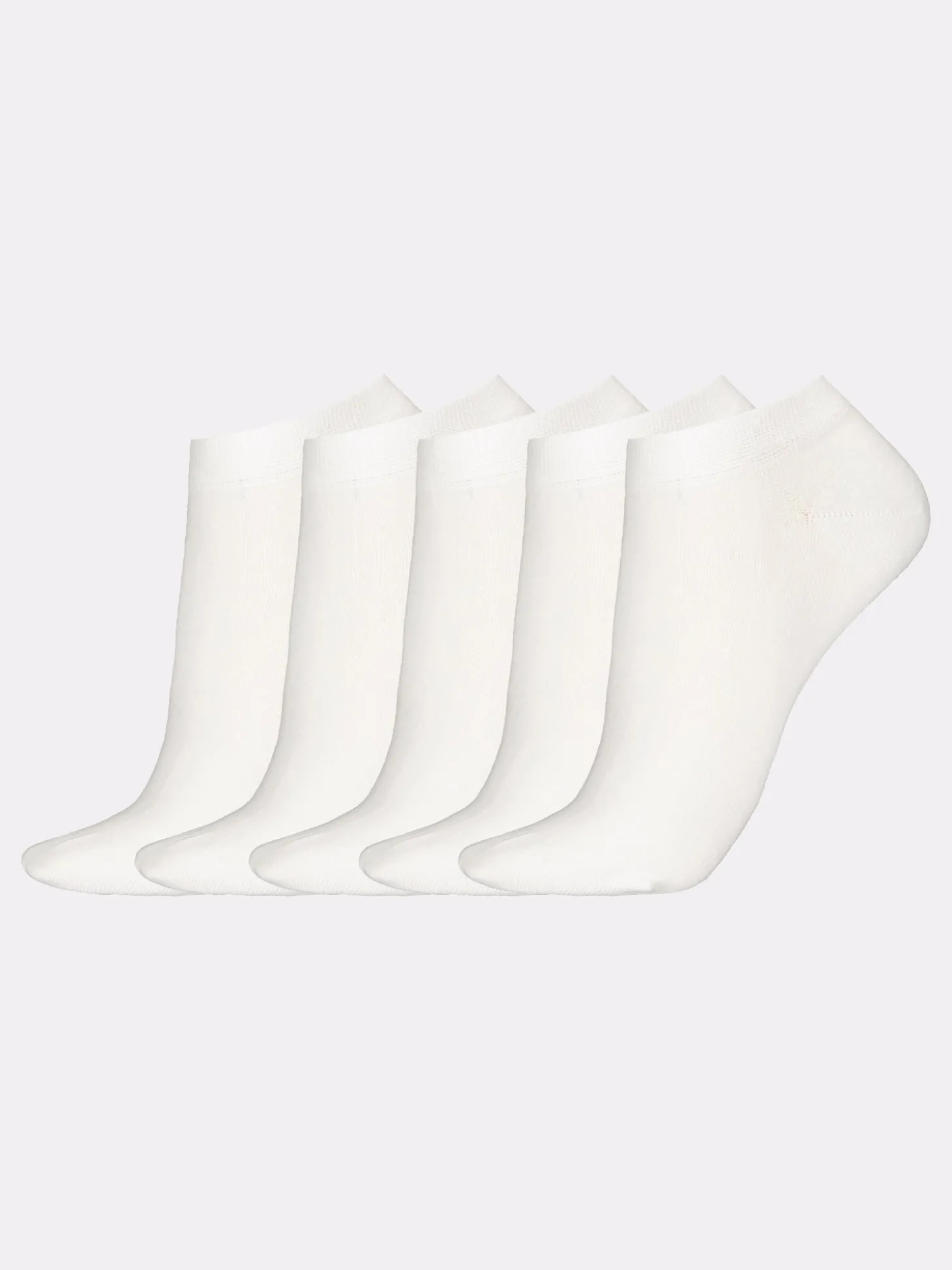 Pehmeät ja joustavat valkoiset sneakersukat, jotka on valmistettu laadukkaasta puuvillasta. Sukat sopivat hyvin tennareiden tai matalavartisten kenkien pariksi. Sukissa on saumaton kärki. Paketti sisältää viisi valkoista sukkaparia.