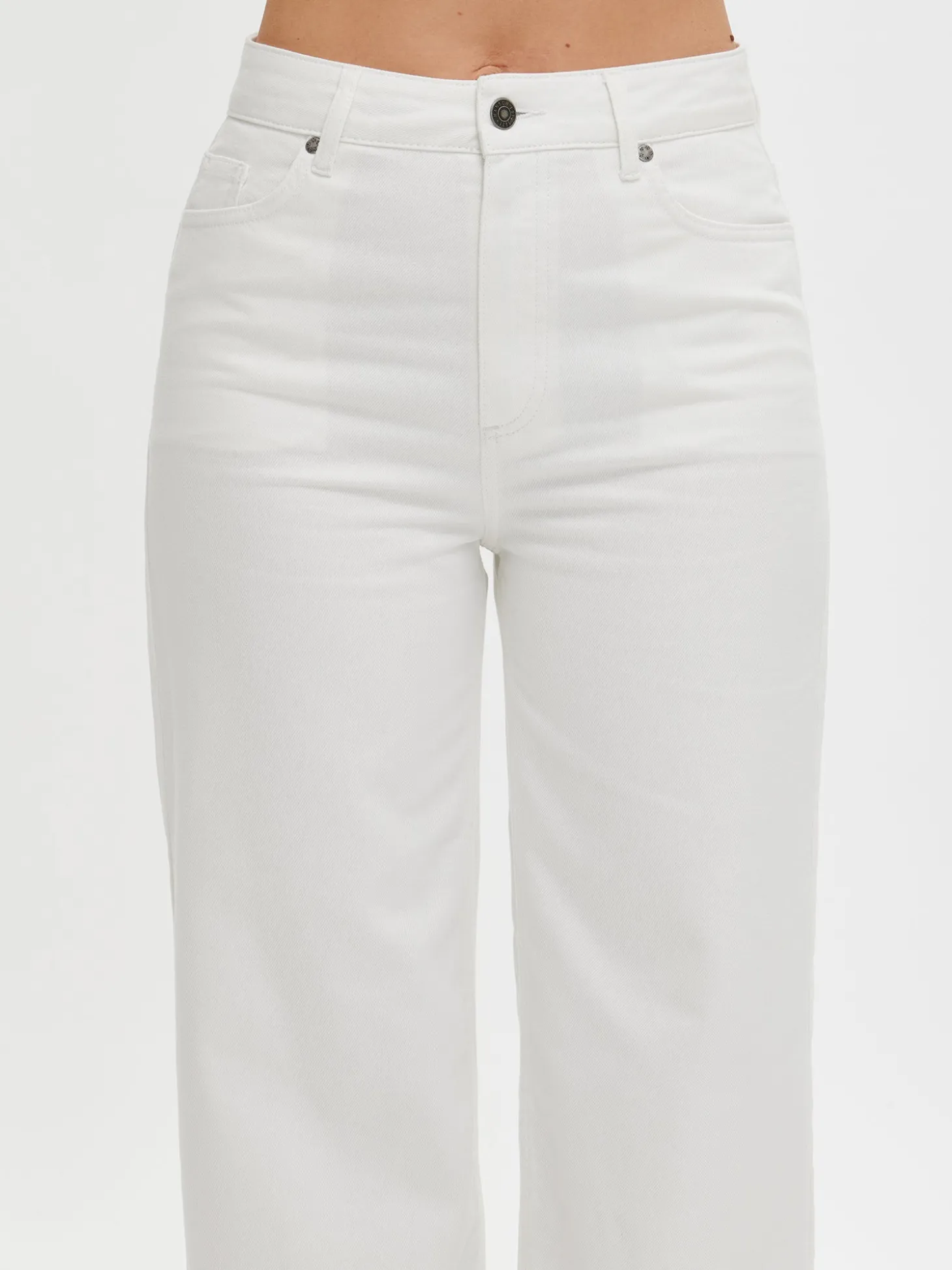 Naisten trendikkäät luonnonvalkoiset Cropped Levee-farkut, joissa on normaalikorkuinen vyötärö. Trendikkäästi vajaamittaiset Levee-farkut ovat helppo ja tyylikäs valinta arkeen. Farkuissa on vyötärökaitale, edessä vetoketju ja nappikiinnitys. Rennoissa farkuissa on taskut edessä ja takana sekä levenevät, vajaamittaiset lahkeet. Lahkeen sisäpituus koossa 38 on noin 65 cm. Materiaali on kudottua twillsidoksista puuvilla-denimkangasta. 20% kankaaseen käytetystä puuvillasta on kierrätettyä.