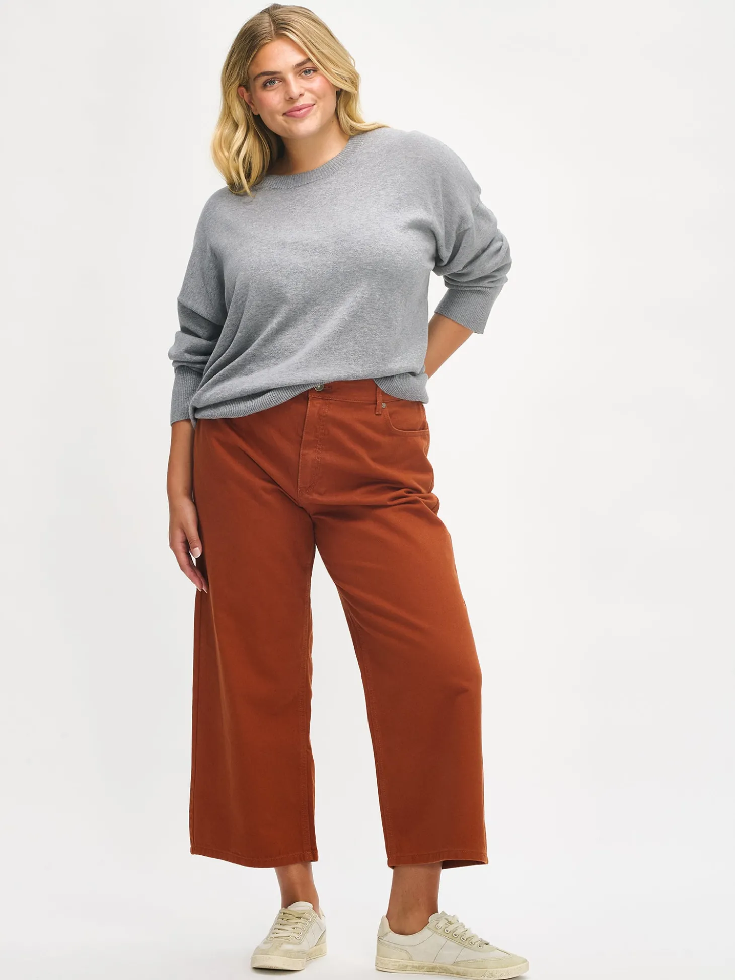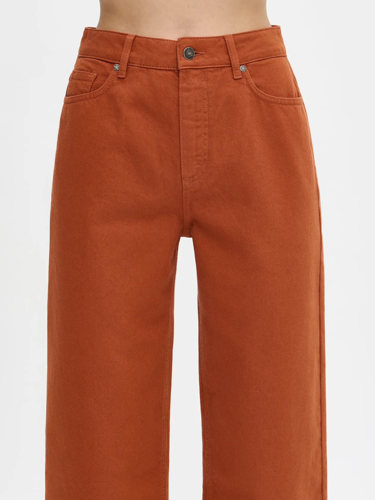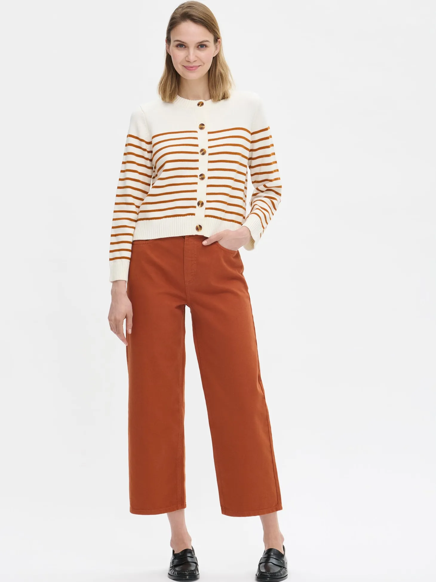 Naisten ruskeat Cropped Levee-farkut, joissa on normaalikorkuinen vyötärö. Trendikkäästi vajaamittaiset Levee-farkut ovat helppo ja tyylikäs valinta arkeen. Farkuissa on vyötärökaitale, edessä vetoketju ja nappikiinnitys. Rennoissa farkuissa on taskut edessä ja takana sekä levenevät, vajaamittaiset lahkeet. Lahkeen sisäpituus koossa 38 on noin 65 cm. Materiaali on kudottua twillsidoksista puuvilla-denimkangasta. 20% kankaaseen käytetystä puuvillasta on kierrätettyä.