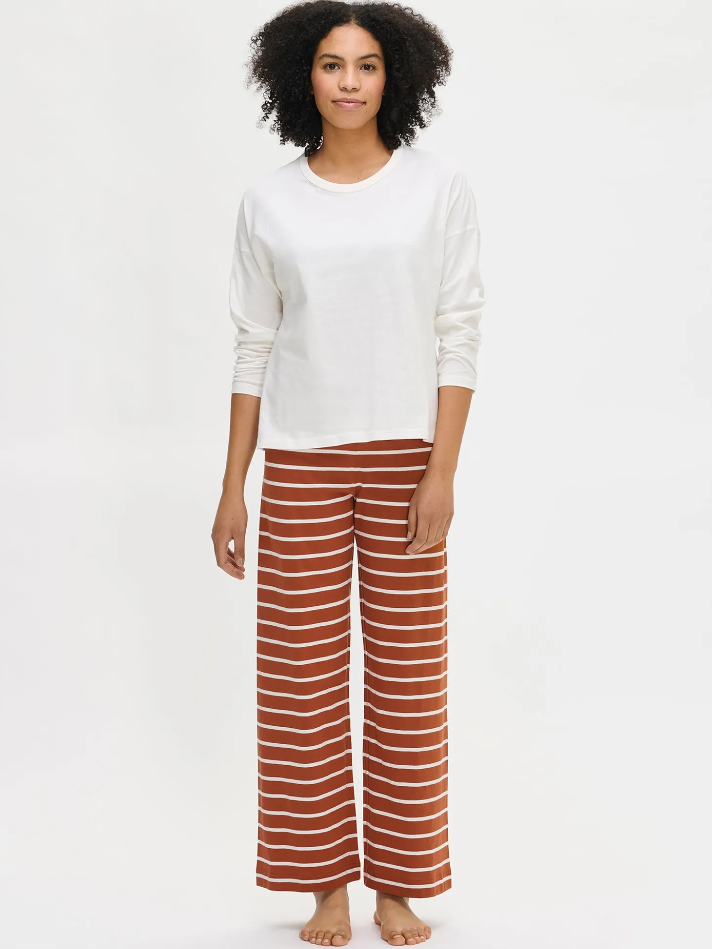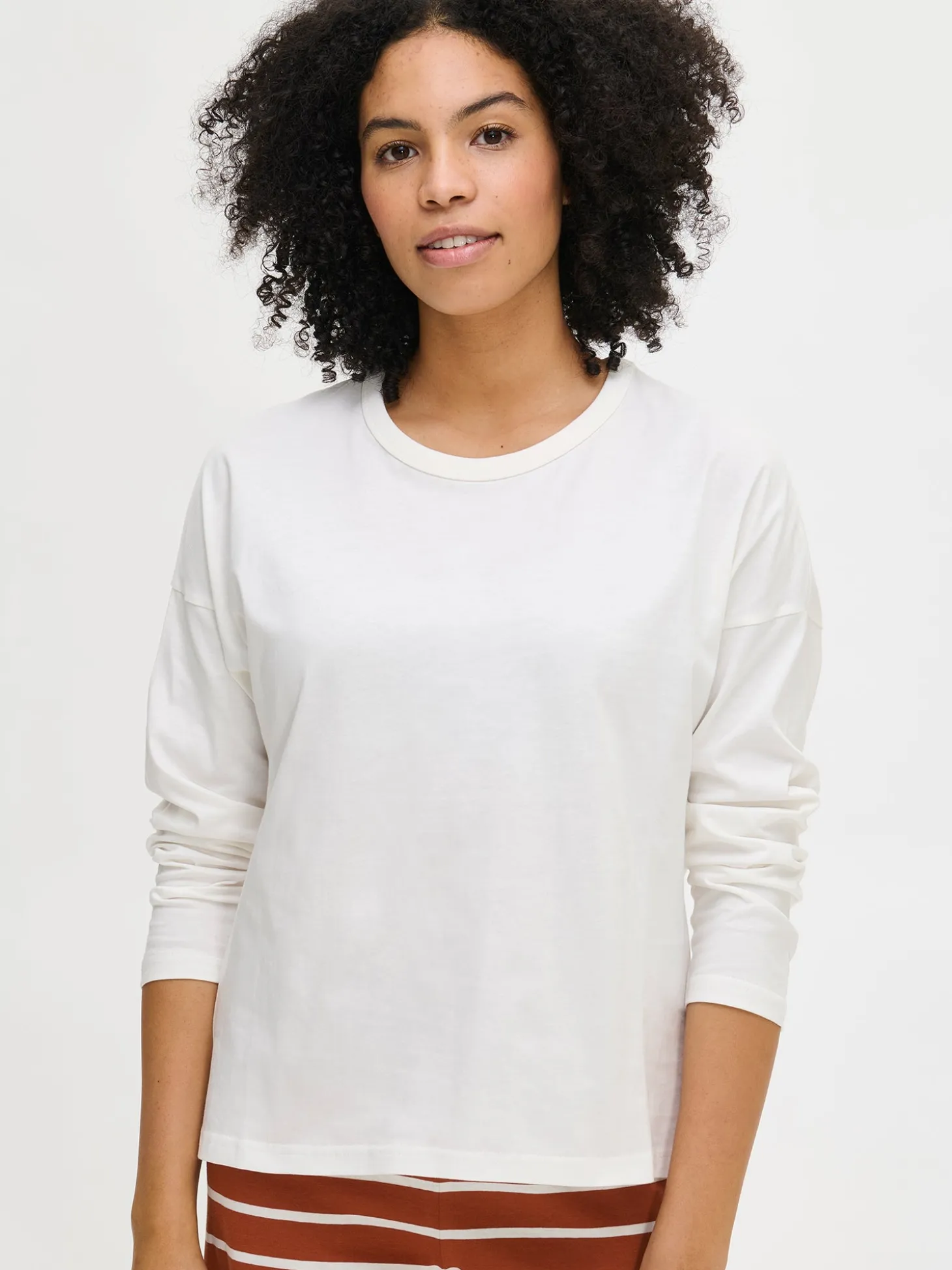 Naisten yksivärinen Duetto-paita luonnonvalkoisena. Paidassa on pudotettu olka ja täyspitkät, väljät suoralinjaiset hihat. Rennon paidan pääntie on viimeistelty kantilla. Paidan pituus koossa M on noin 65 cm. Materiaali on laadukasta, iholla miellyttävän pehmeältä tuntuvaa ja helppohoitoista puuvillaneulosta, joka pysyy hyvänä pesusta toiseen. Neulos on valmistettu sertifioidusta puuvillasta.