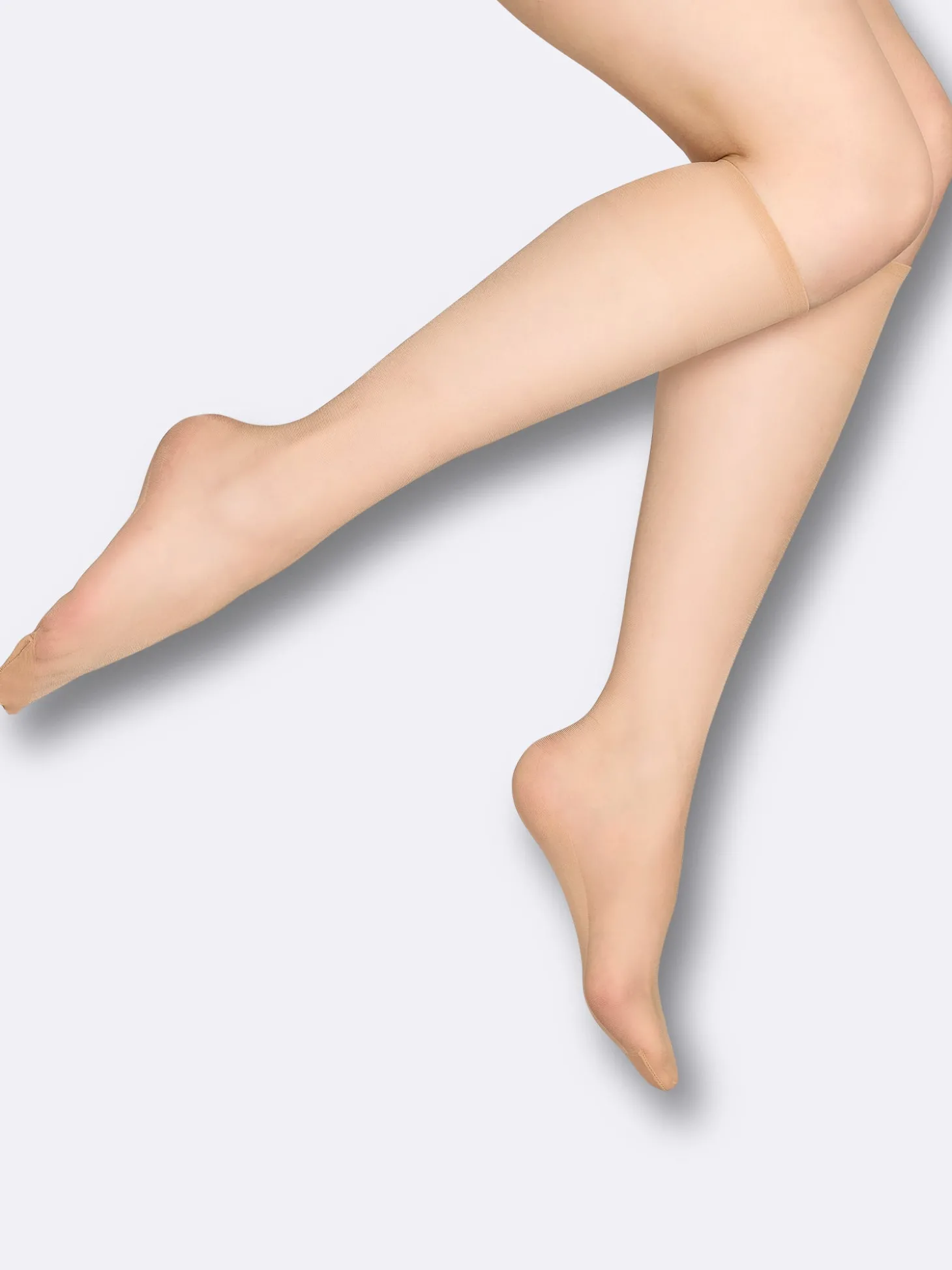 Klassiset 20 denierin polvisukat päivittäiseen käyttöön, semi-matta viimeistelyllä. Vahvistettu kärki, pohja ja kantapää lisäävät sukkien kestävyyttä arjessa.