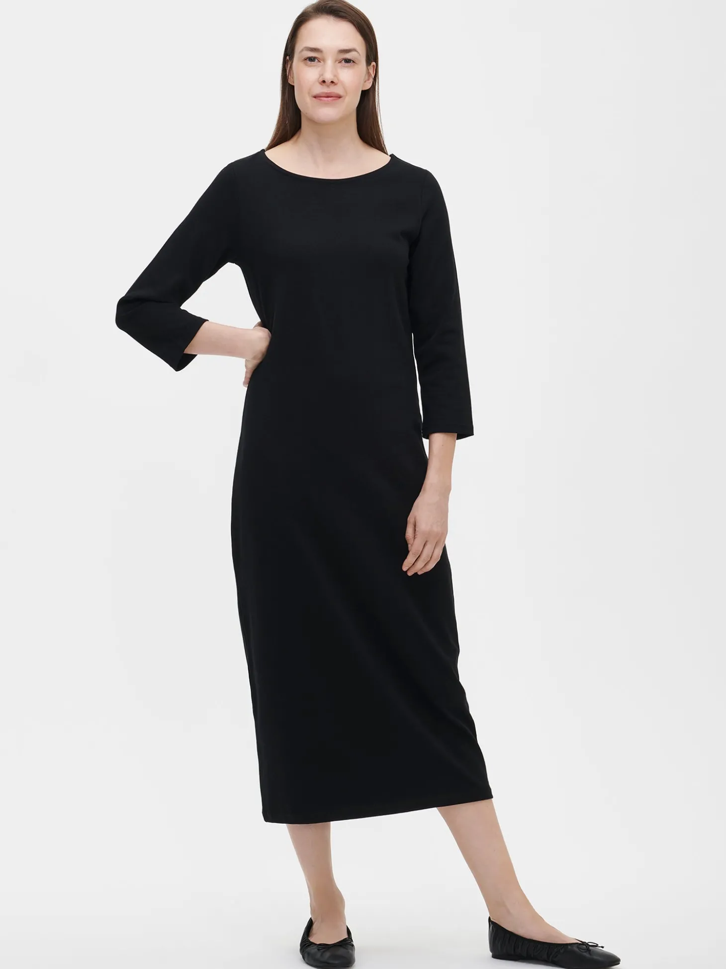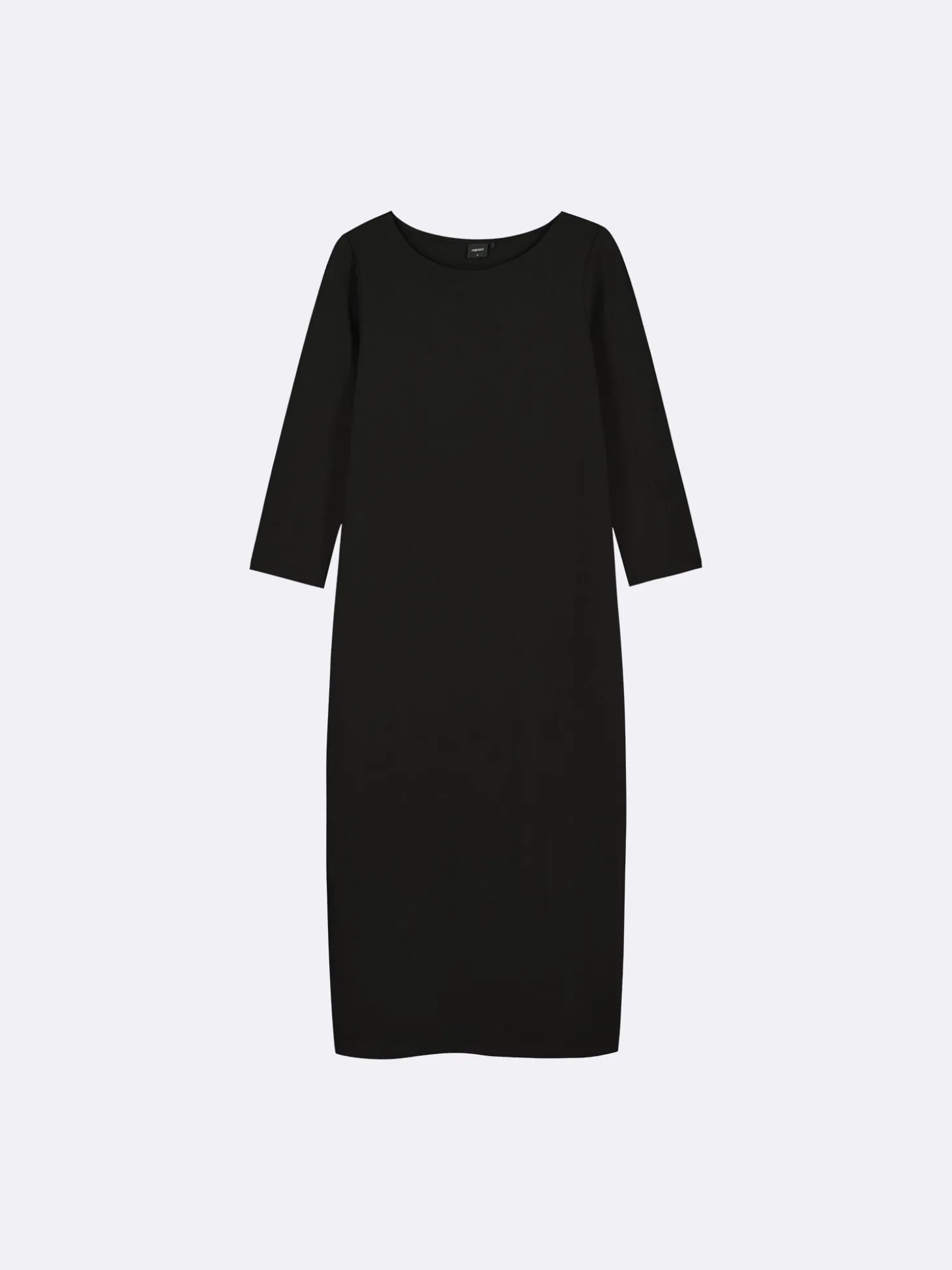 Naisten klassinen ja tyylikäs musta Forma-mekko. Istuva mekko on tyylikäs valinta arkeen. Mekon voi kerrostaa lämpimän neulepaidan kanssa viileämmällä säällä. Istuvassa mekossa on kantilla viimeistelty venepääntie ja 3/4 pituiset hihat. Mekon pituus koossa M on noin 130 cm. Materiaali on miellyttävän tuntuista ja helppohoitoista puuvillaneulosta. Materiaalille on ominaista 3-5% kutistuminen ensimmäisessä pesussa. Pesun jälkeen muotoile tuote kosteana.