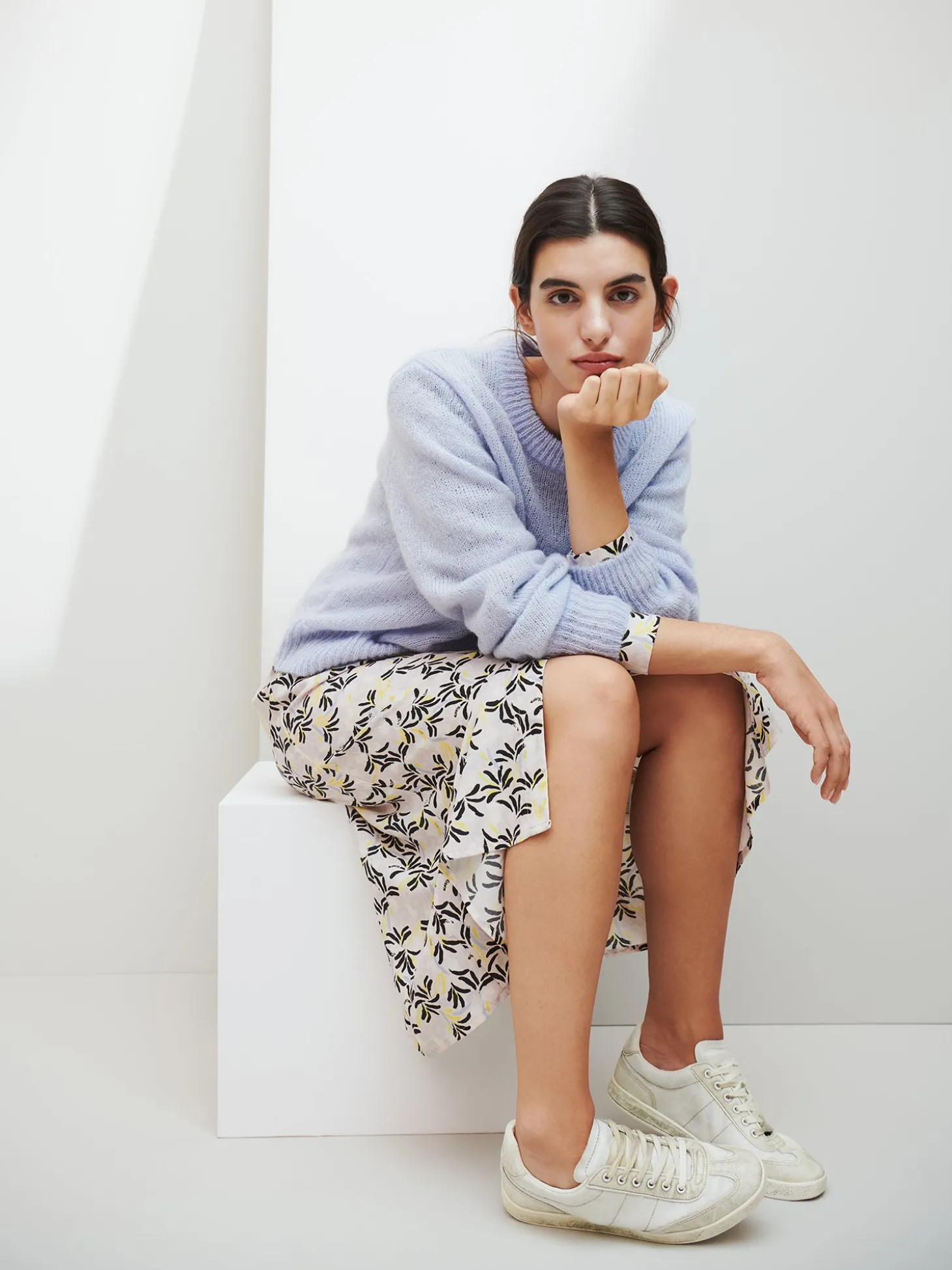 Dunja on 177 cm pitkä ja hänellä on päällään tuotteesta koko 36. Mallin ympärysmitat ovat: rinta 88 cm, vyötärö 64 cm ja lantio 94 cm.