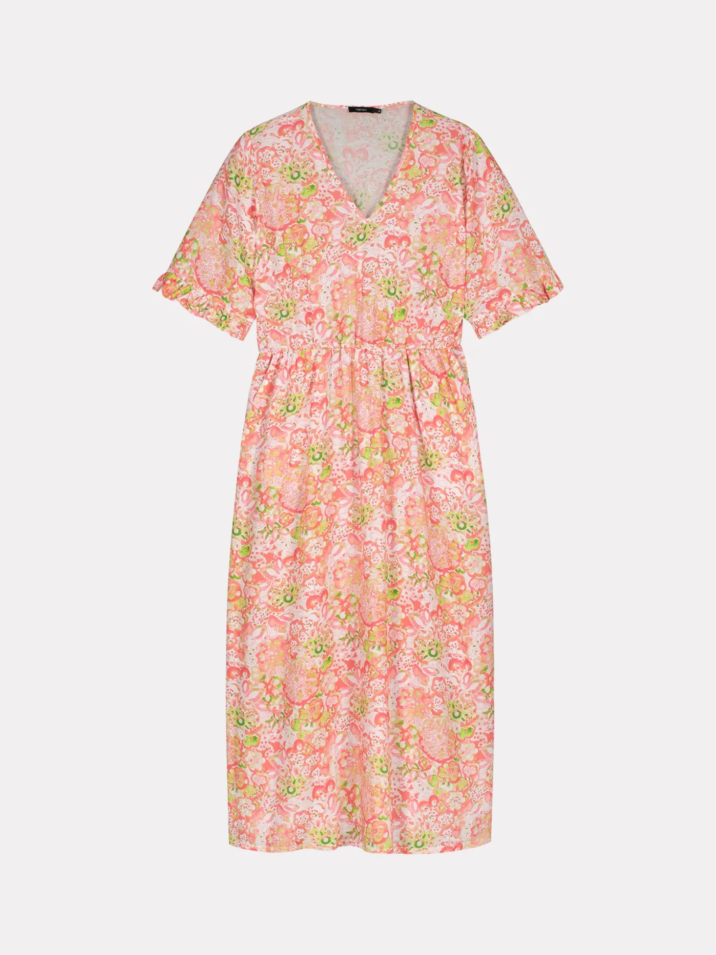 Naisten ihastuttava monivärinen Kreeta-mekko. Rento ja kevyt kangasmekko on mukava valinta kesään. Kauniissa vuorittomassa mekossa on v-pääntie ja lyhyet hihat, joiden hihansuissa on poimutus. Mekon vyötäröllä on kuminauha ja sivuissa on taskut. Mekon helma kellottuu kauniisti. Mekon pituus koossa 38 on noin 125 cm. Materiaali on kevyttä ja läpikuultavaa miellyttävän tuntuista LYOCELL TENCEL™ -kangasta. Materiaalille on ominaista 3-5% kutistuminen ensimmäisessä pesussa.