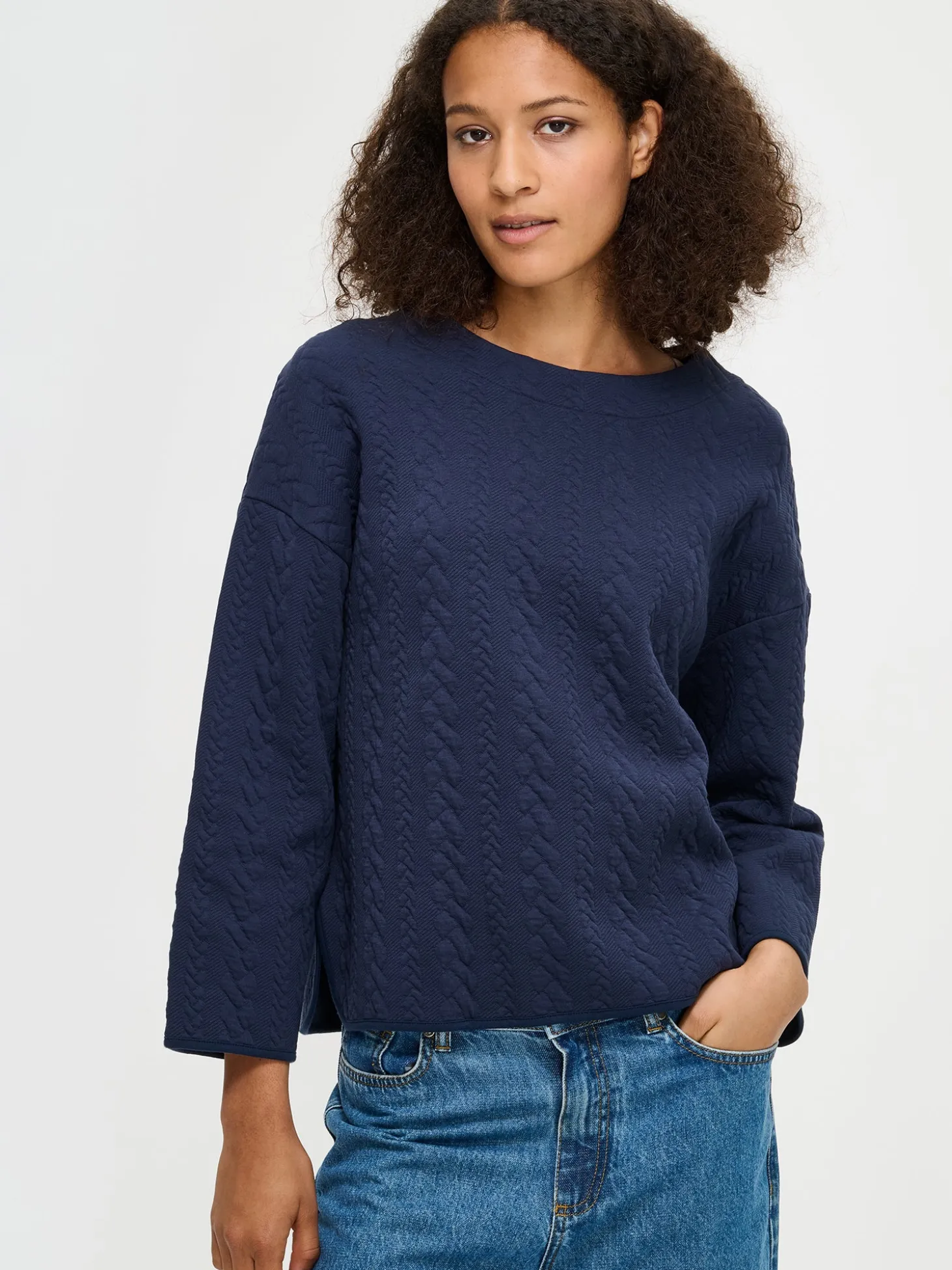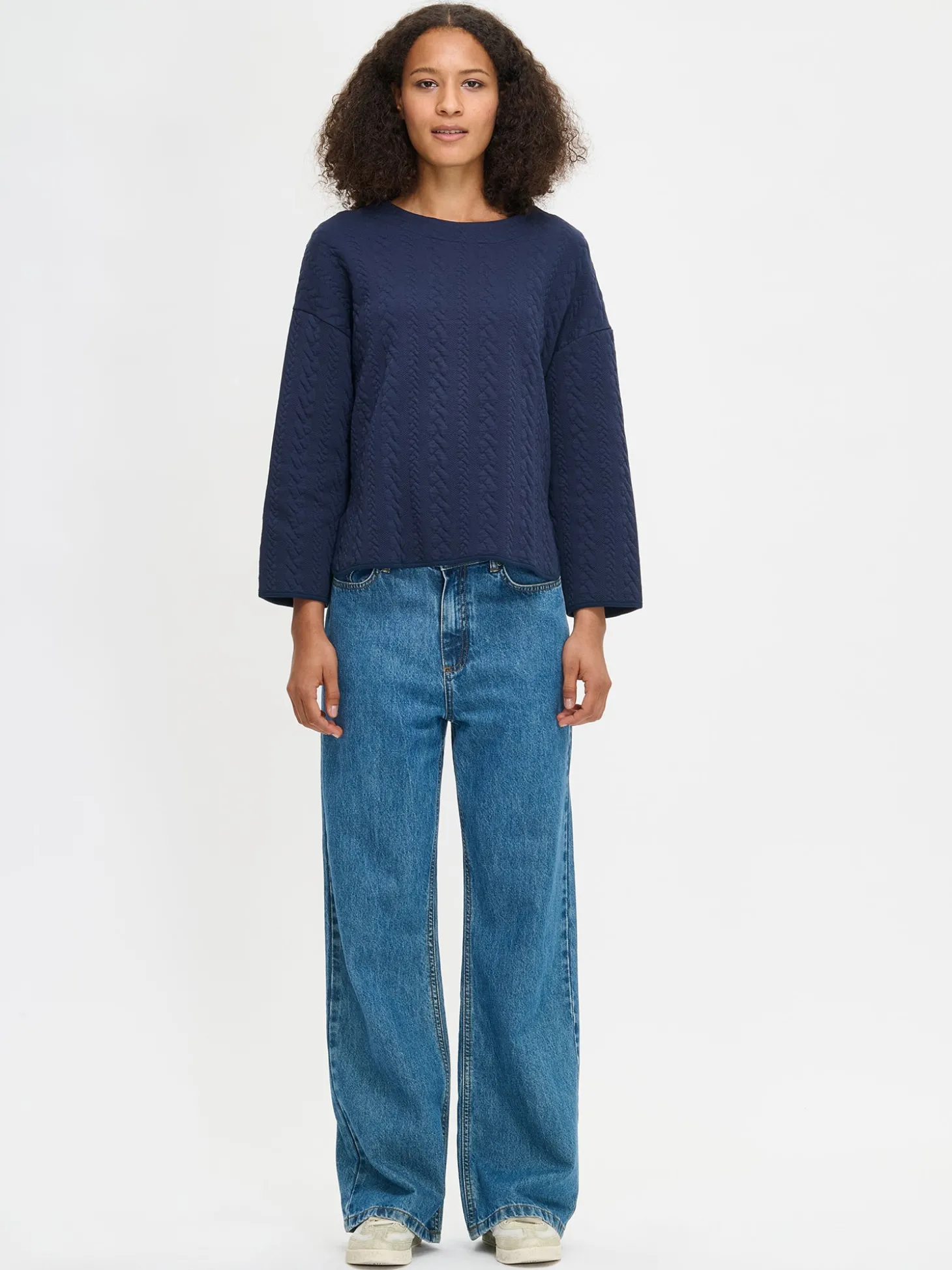 Naisten mukava tummansininen Letti-pusero. Puserossa on alavaralla viimeistelty pyöreä pääntie, pudotettu olkalinja ja pitkät hihat. Puseron helmassa pyöristetyt halkiot. Puseron pituus koossa M on noin 64 cm. Ryhdikäs palmikkomaisesti pintakuvioitu materiaali on miellyttävää puuvilla-elastaanineulosta. Materiaalille on ominaista 3-5% kutistuminen ensimmäisessä pesussa.