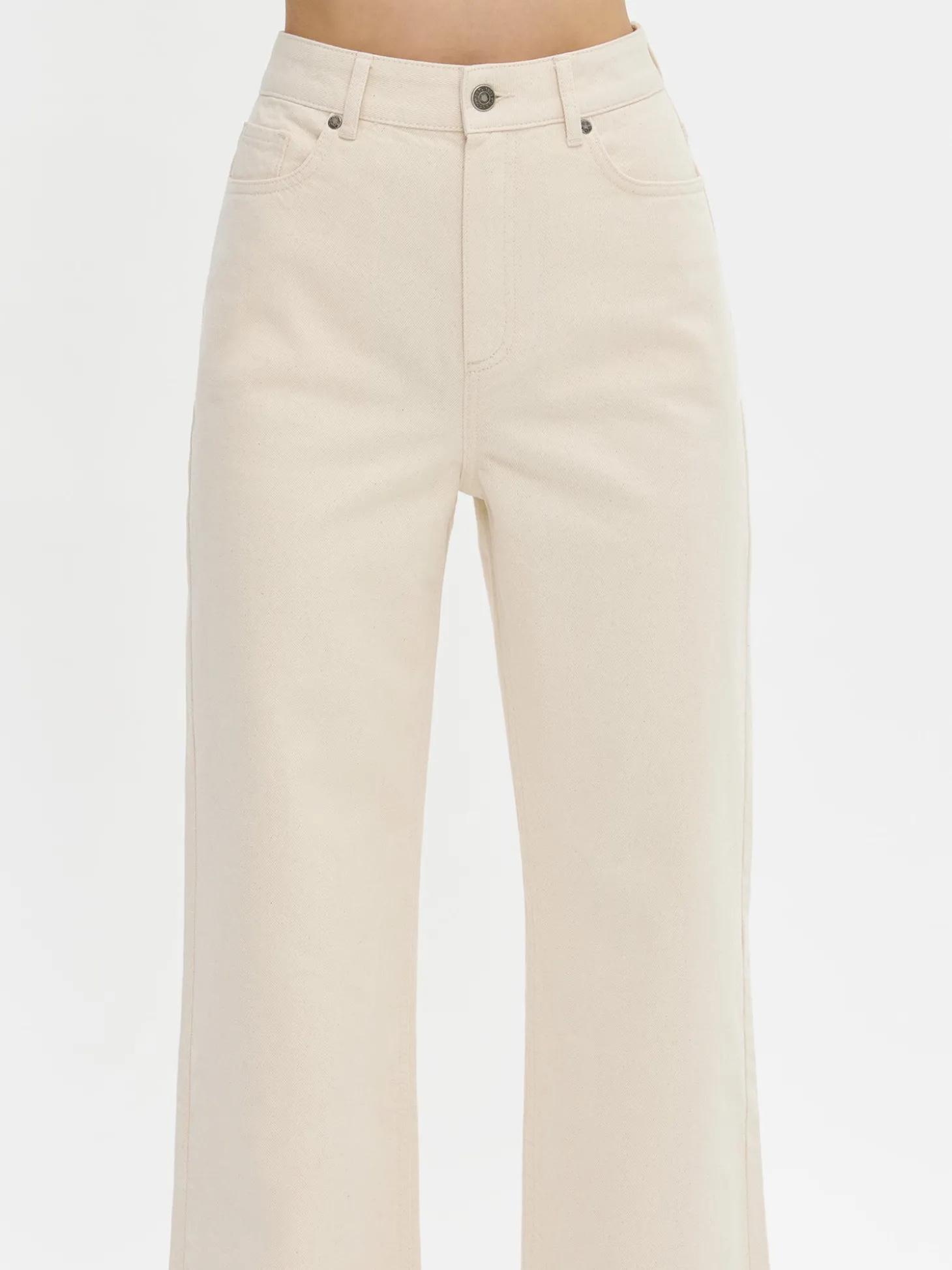 Naisten trendikkäät luonnonvalkoiset Levee-farkut hurmaavat leveillä lahkeillaan ja korkealla vyötäröllään. Ajattoman raikas sävy ja imarteleva istuvuus tekevät näistä farkuista täydellisen valinnan niin arkeen kuin vapaa-aikaan.