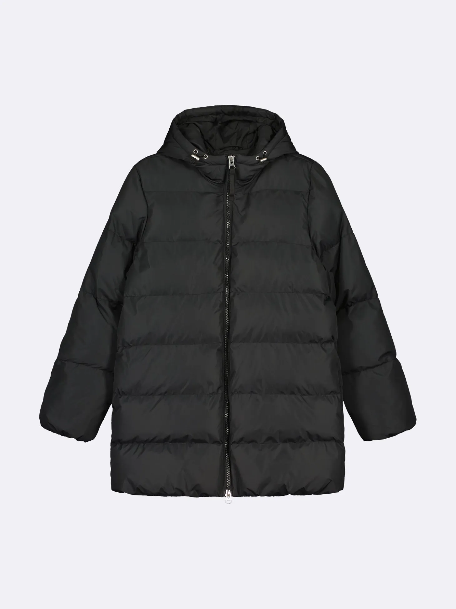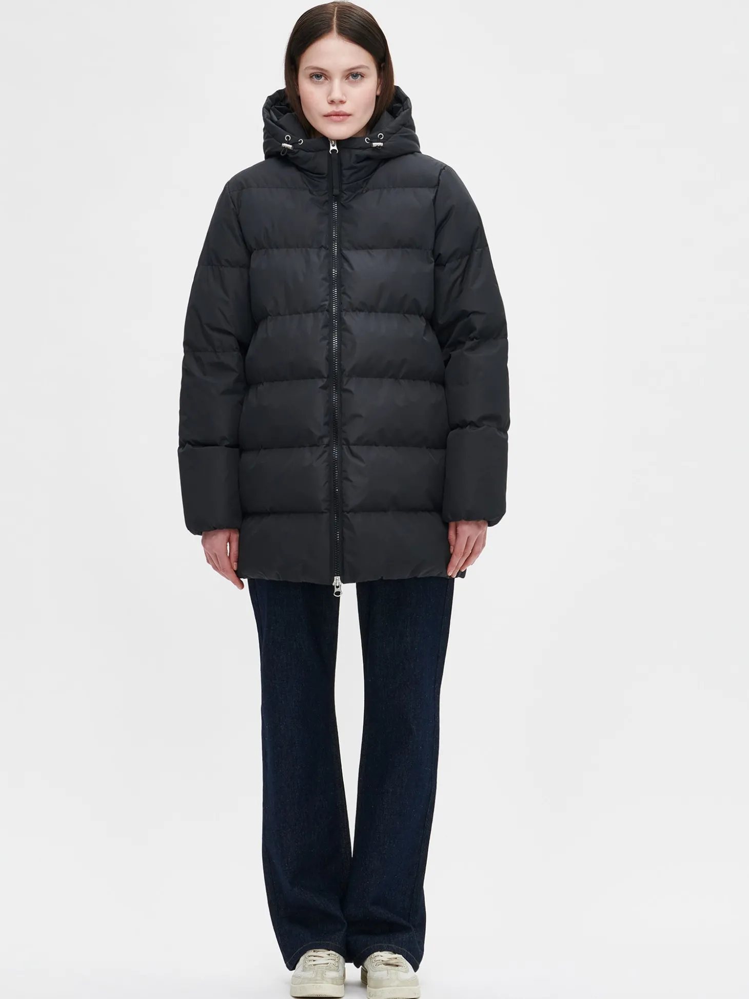 Lämmin ja muhkea musta Lumi-toppatakki miellyttävän kevyellä vanuvuorella. Takissa on lämmin huppu, jossa on kiristysmahdollisuus. Takin hihansuissa ja helmassa on kuminauhareunus. Toppatakissa on sivutaskut ja tuulilistallinen kaksisuuntainen vetoketjukiinnitys. Takin pituus koossa M on noin 85 cm. Materiaali on laadukasta, vettähylkivää ja kierrätyspolyesteria. Toppatakissa on Sorona-vanu.