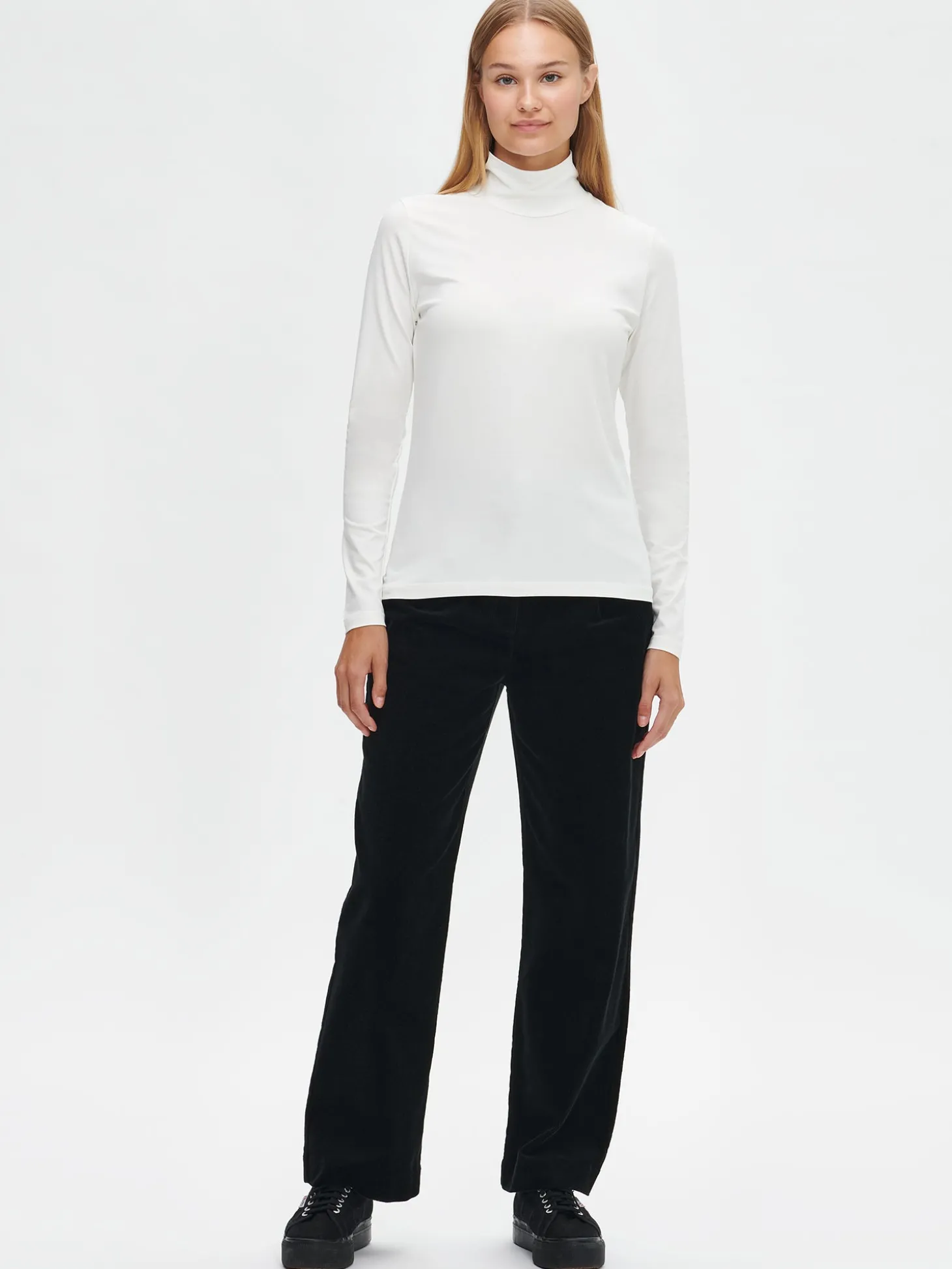 Naisten luonnonvalkoinen Mari-poolopusero. Istuva poolo on ajaton klassikko, johon haluaa pukeutua vuodesta toiseen. Monikäyttöisen poolon voi pukea myös lyhythihaisen mekon tai paidan alle. Istuvassa matalakauluksellisessa poolopuserossa on täyspitkät hihat. Puseron pituus koossa M on noin 65 cm. Poolon materiaali on miellyttävää ja joustavaa luomupuuvilla-elastaani-neulosta.