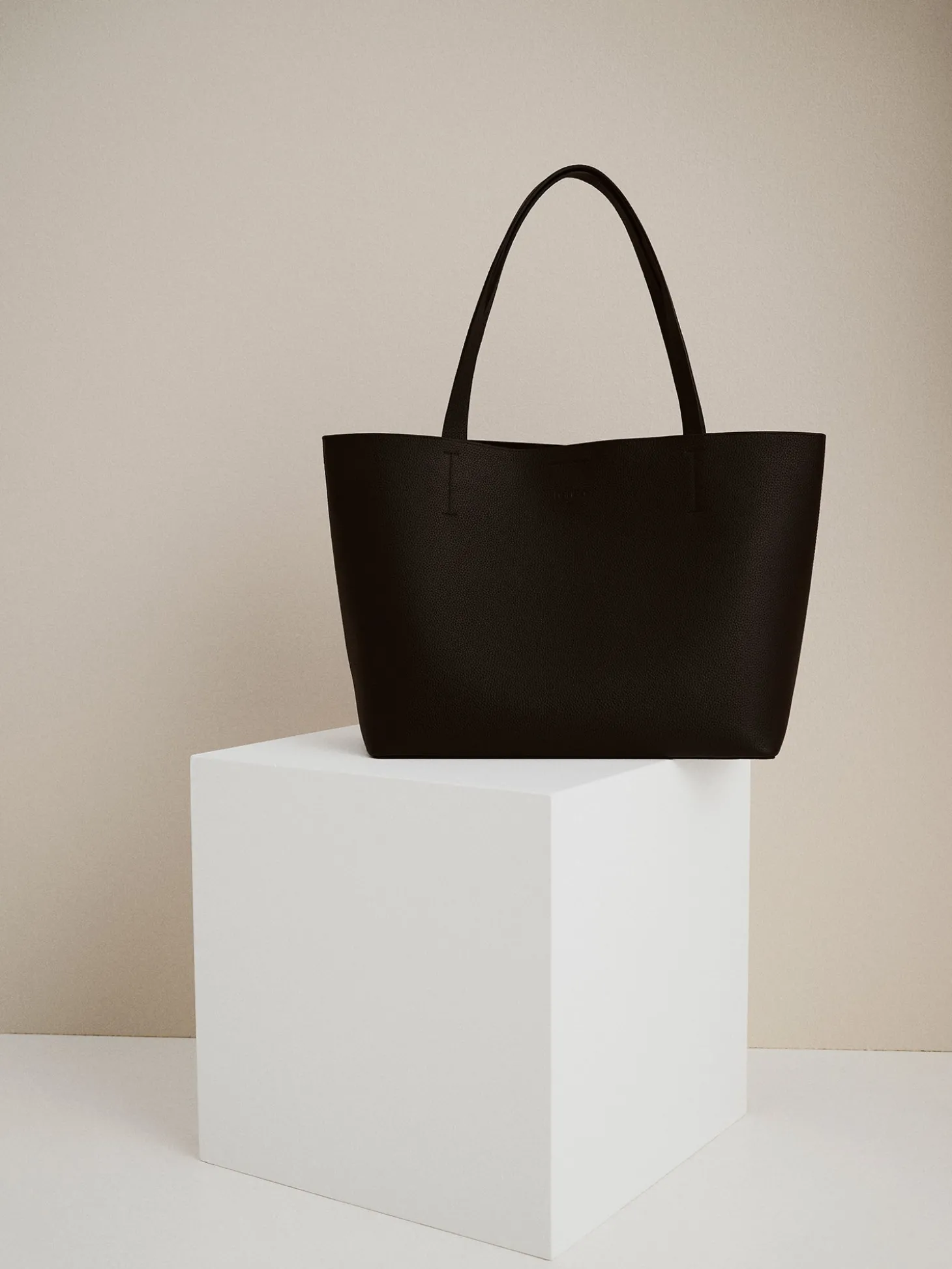 Tyylikkyys ja käytännöllisyys kohtaavat – musta klassinen Maxi Naru nahkalaukku on oikea arjen pelastaja. Minimalistisen tyylikäs tote bag-tyylinen laukku sulautuu vaivattomasti monenlaiseen asuun.