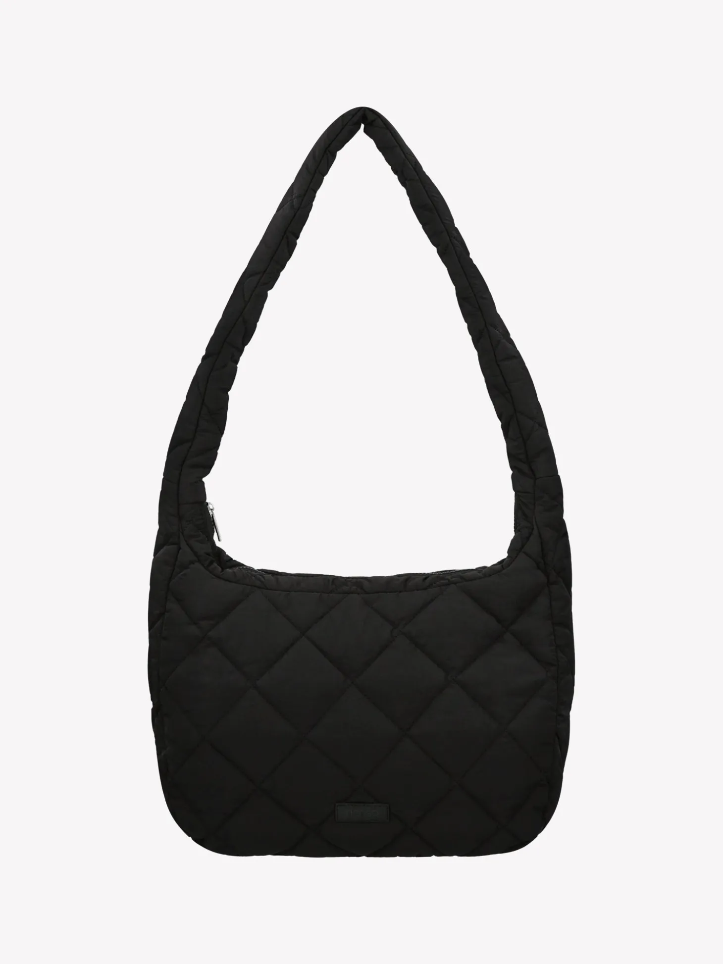 Trendikäs ja käytännöllinen tikkikankaasta valmistettu musta Maxi Vanu-laukku. Tämä pelkistetyn tyylikäs ja ihanan kevyt laukku sopii asuun kuin asuun ja kulkee kätevästi mukana.