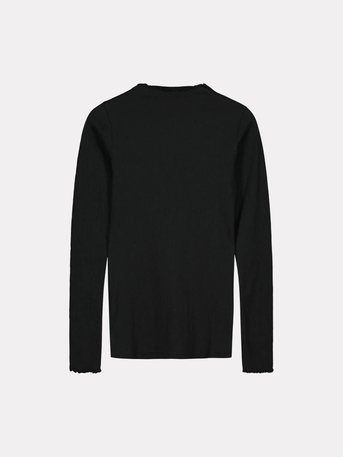 Naisten istuva, musta struktuuripintainen Mette-pusero. Ajattoman puseron voi helposti yhdistää erilaisten housujen, hameiden tai mekkojen pariksi. Tyylikkäässä puserossa on matala pystykaulus ja täyspitkät hihat. Puseron pääntien ja hihansuiden reunat on huoliteltu rullapäärmeellä, joka luo paidan reunoihin kauniin aaltoilevan efektin. Puseron pituus koossa M on noin 65 cm. Materiaali on miellyttävää ja joustavaa puuvilla-polyesteri-elastaani-neulosta.