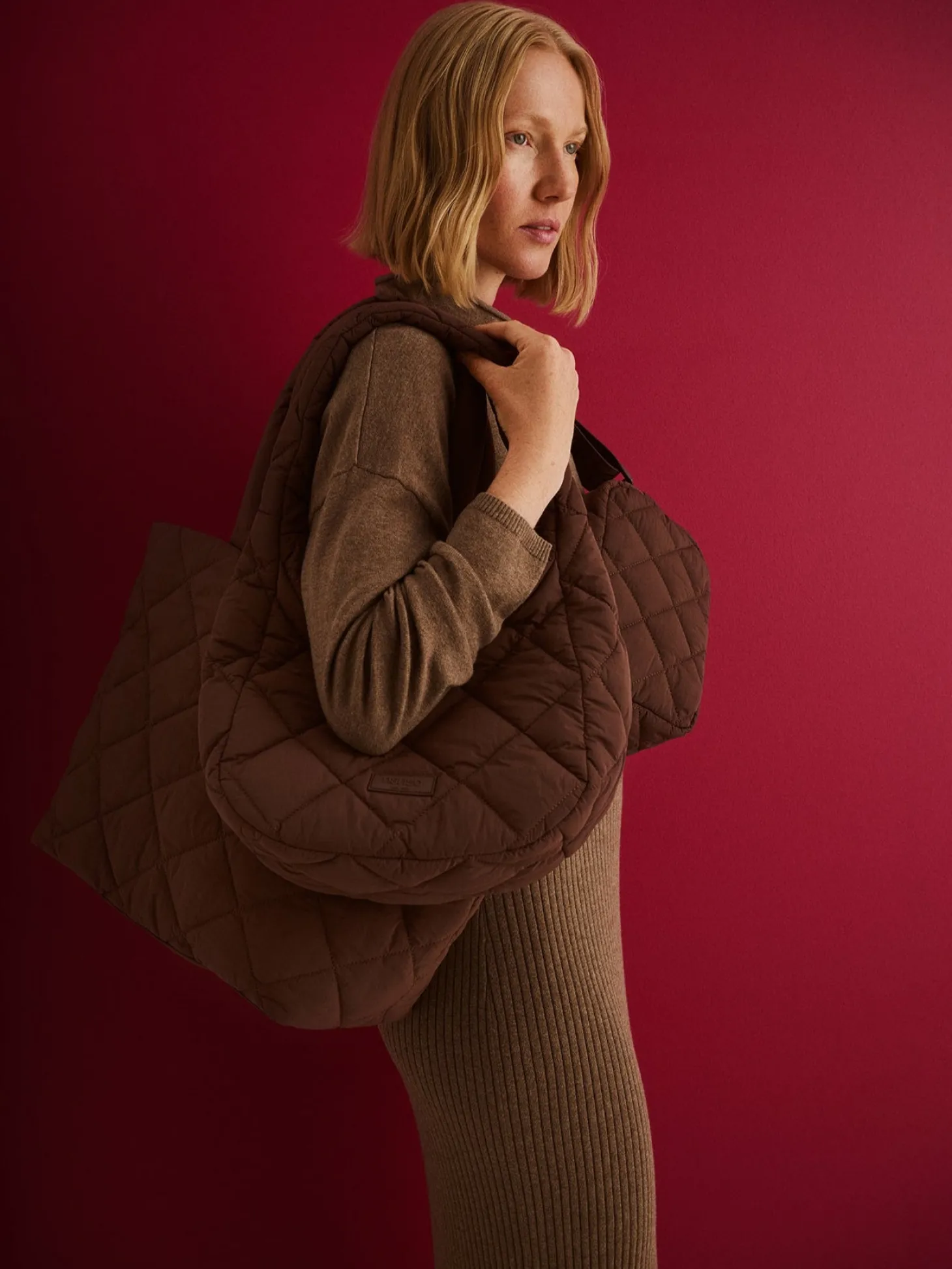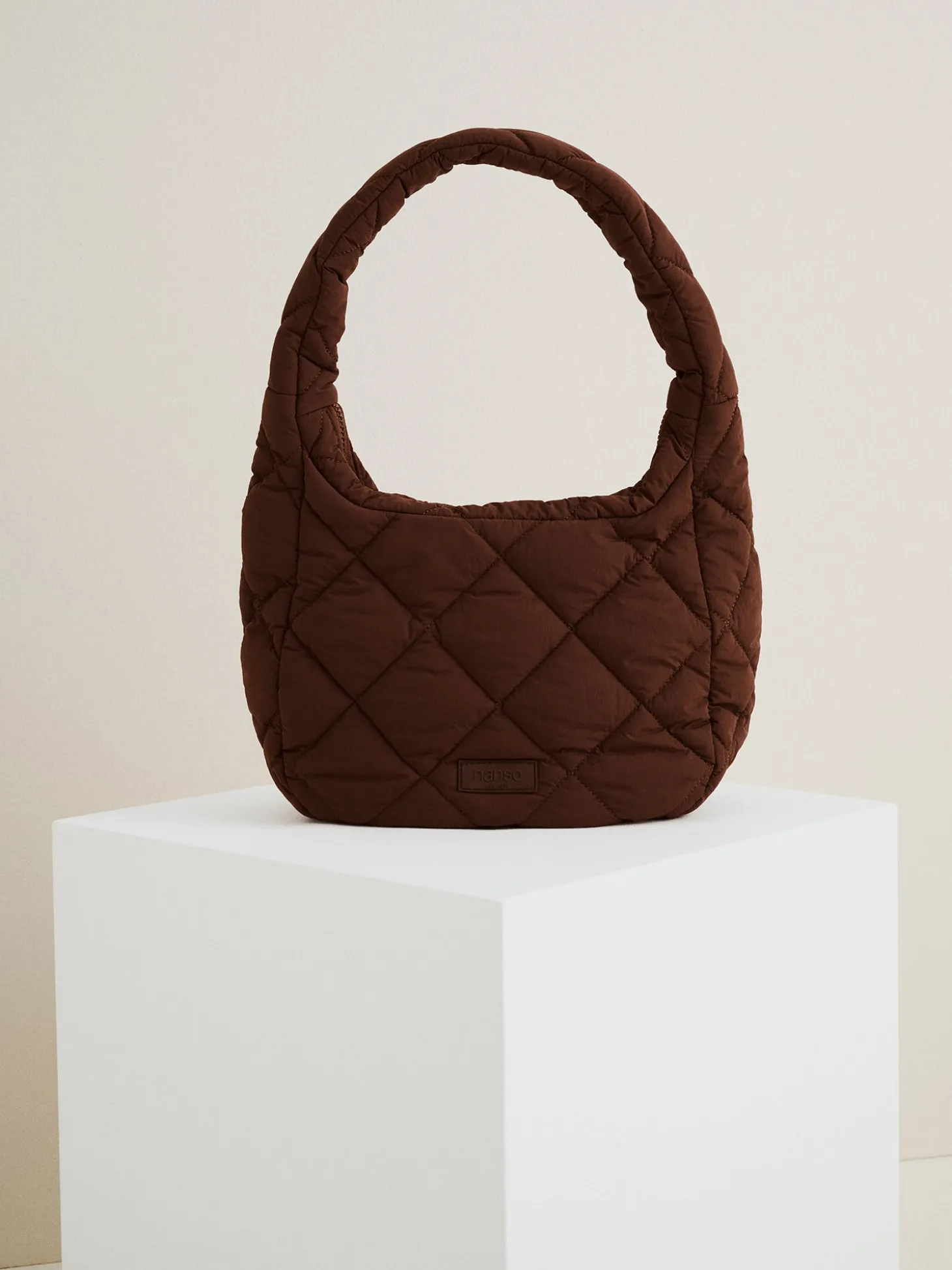 Trendikäs ja käytännöllinen tikkikankaasta valmistettu tummanruskea Midi Vanu-laukku. Tämä pelkistetyn tyylikäs ja ihanan kevyt laukku sopii asuun kuin asuun ja kulkee kätevästi mukana.