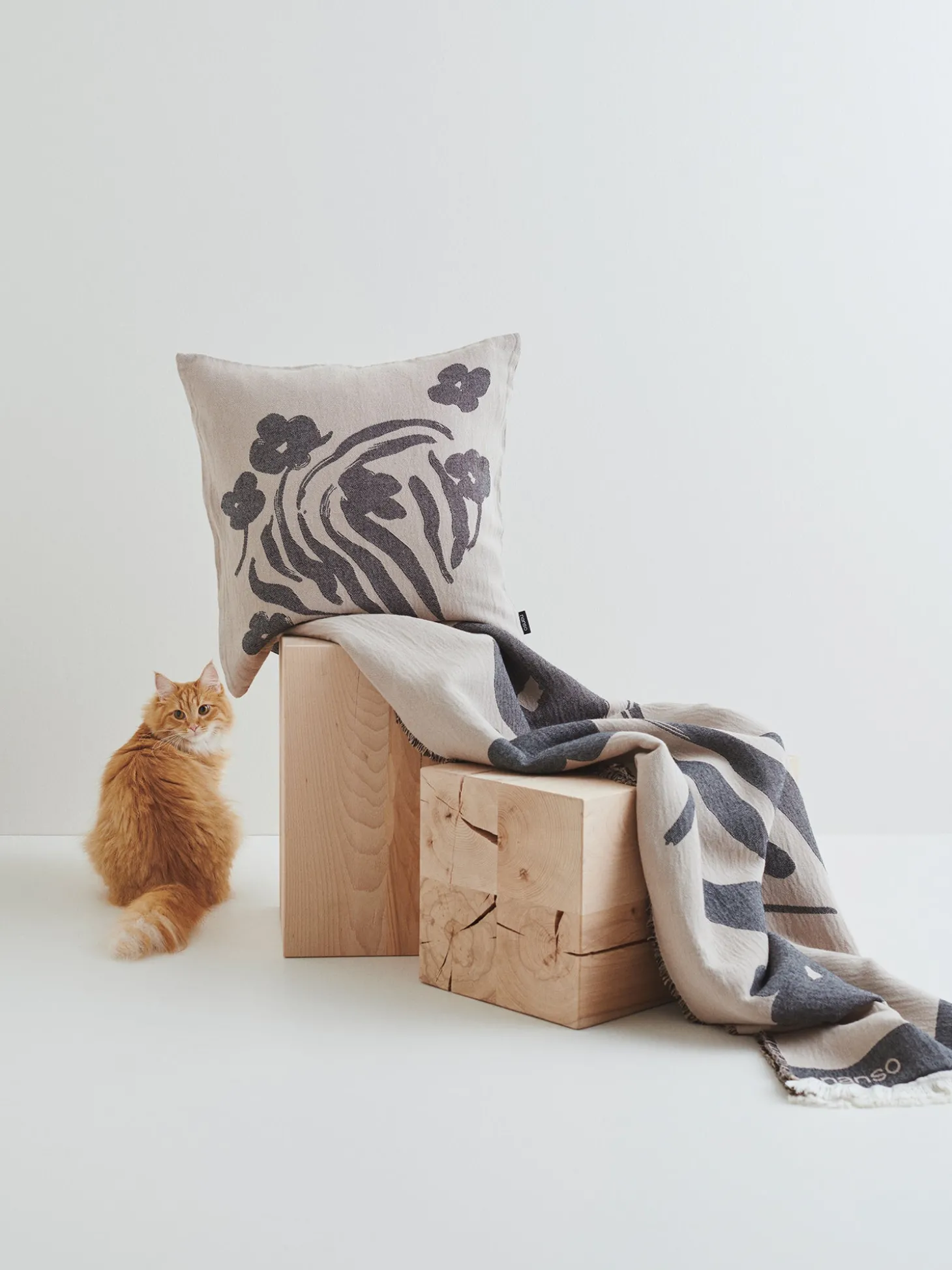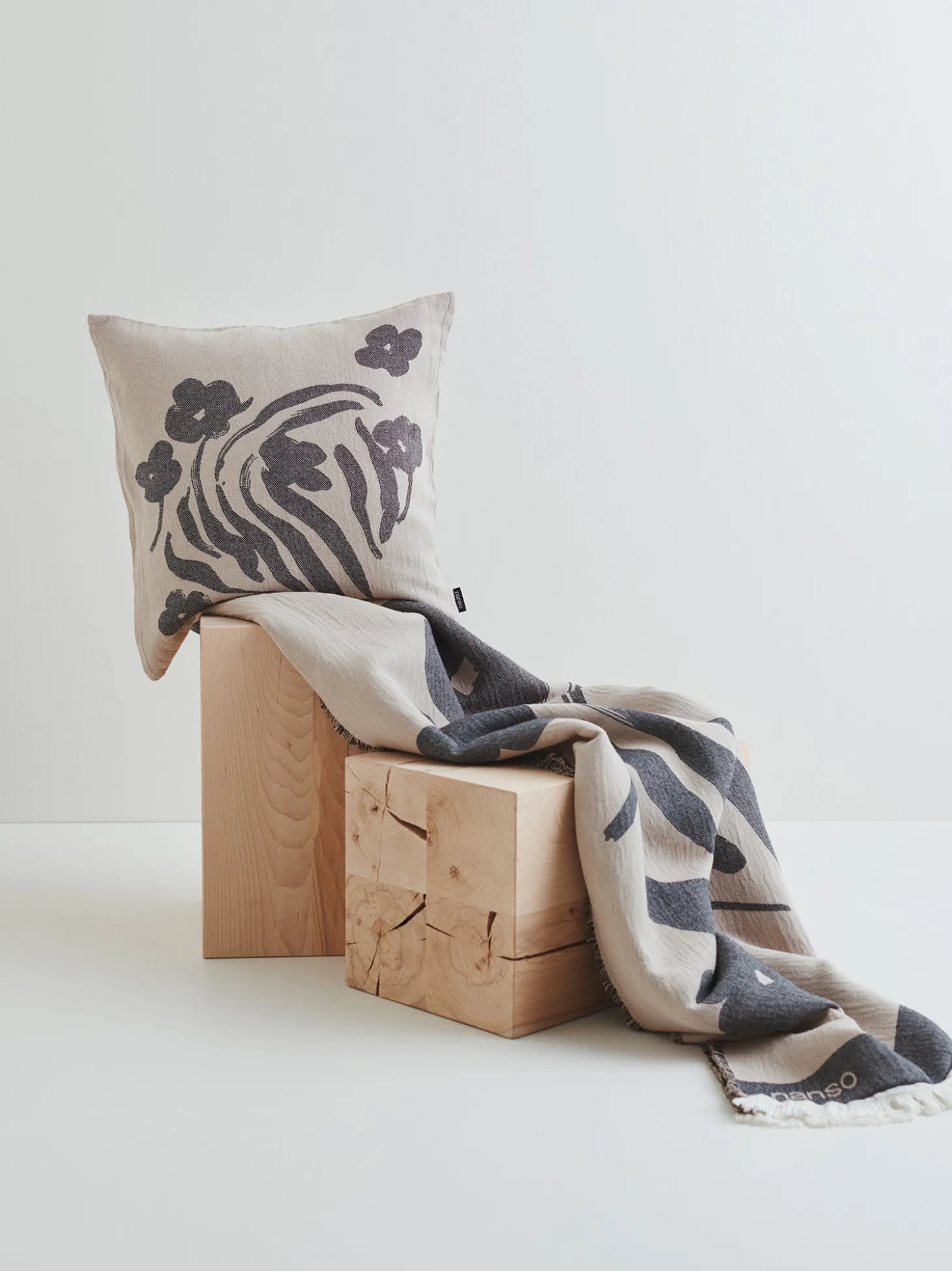 Hurmaavan pehmeä Misteli-torkkupeitto on valmistettu puuvillasta. Torkkupeitossa on näyttävä iso kukkakuvio vaalealla pohjalla. Pehmeään ja lämpimään peittoon on ihanaa kietoutua. Kaunis kuvio on kudottu jacquard-tekniikalla, jolloin se on vastavärinen toisella puolella. Peittoon on brodeerattu Nanso-logo vasempaan alakulmaan. Peiton reunoja koristavat ihastuttavat hapsut. Torkkupeiton mitat ovat 170 cm x 130 cm.
