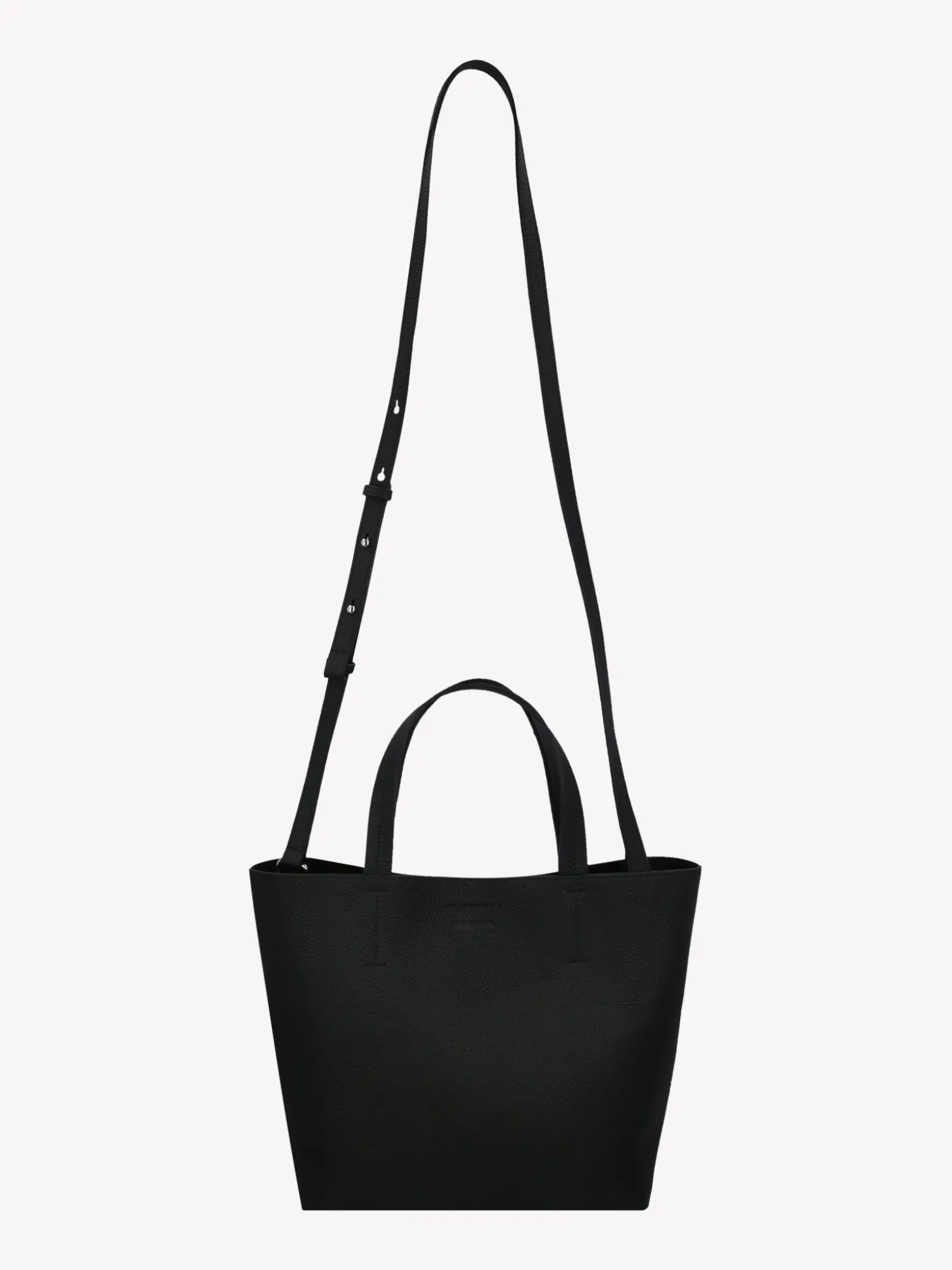 Ajaton, käytännöllinen ja minimalistisen tyylikäs – musta Naru Tote- nahkalaukku hurmaa monikäyttöisyydellään. Upea tote bag- tyylinen laukku kulkee vaivattomasti mukana arjen kiireissä aamusta iltaan.