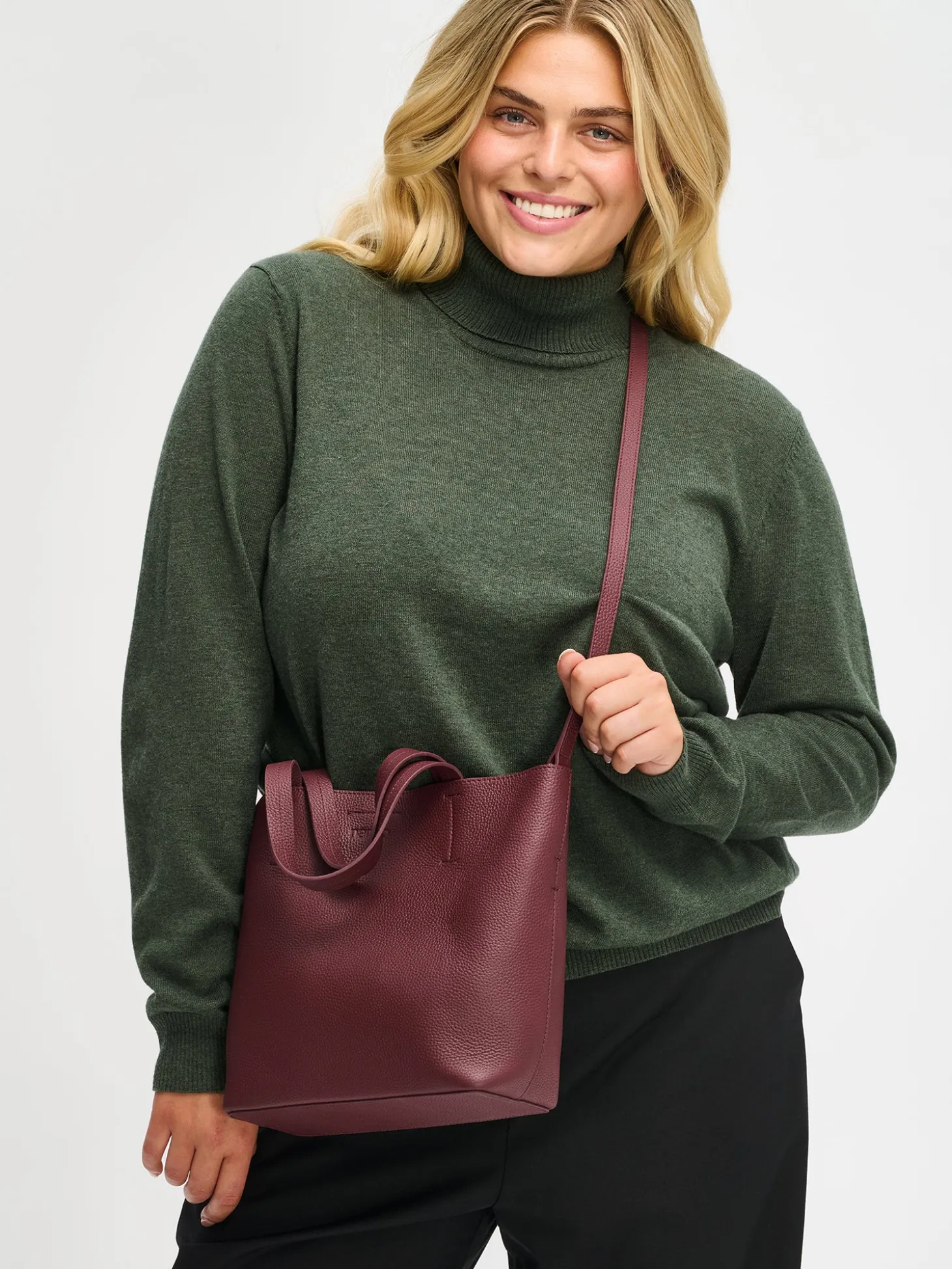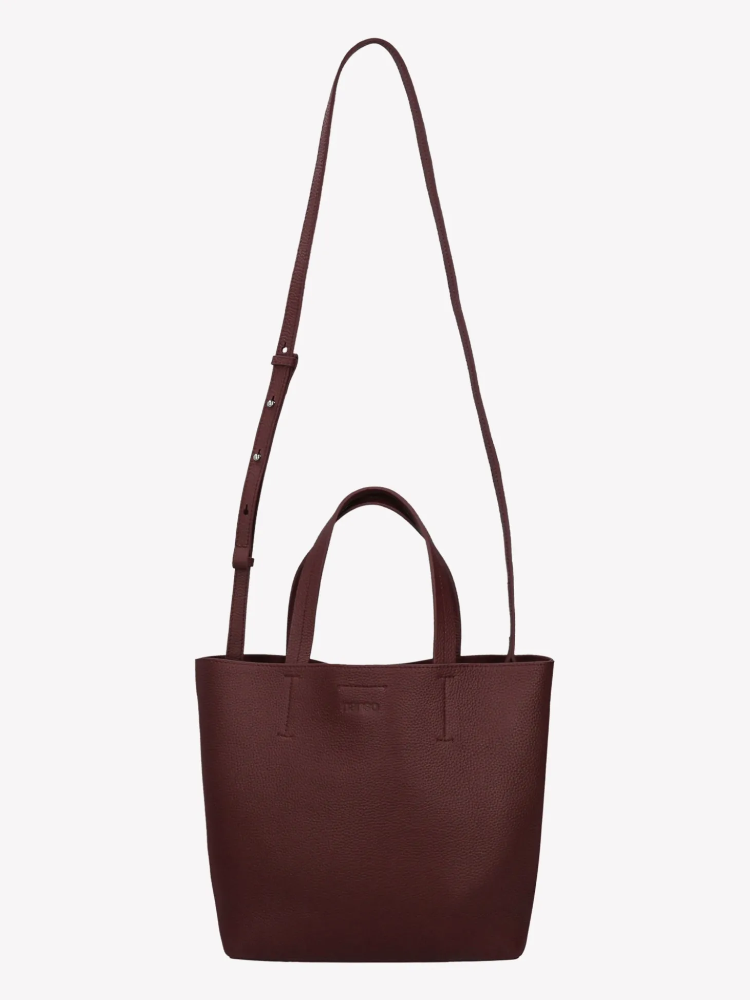 Ajaton, käytännöllinen ja minimalistisen tyylikäs – tumma viininpunainen Naru Tote- nahkalaukku hurmaa monikäyttöisyydellään. Upea tote bag- tyylinen laukku kulkee vaivattomasti mukana arjen kiireissä aamusta iltaan.