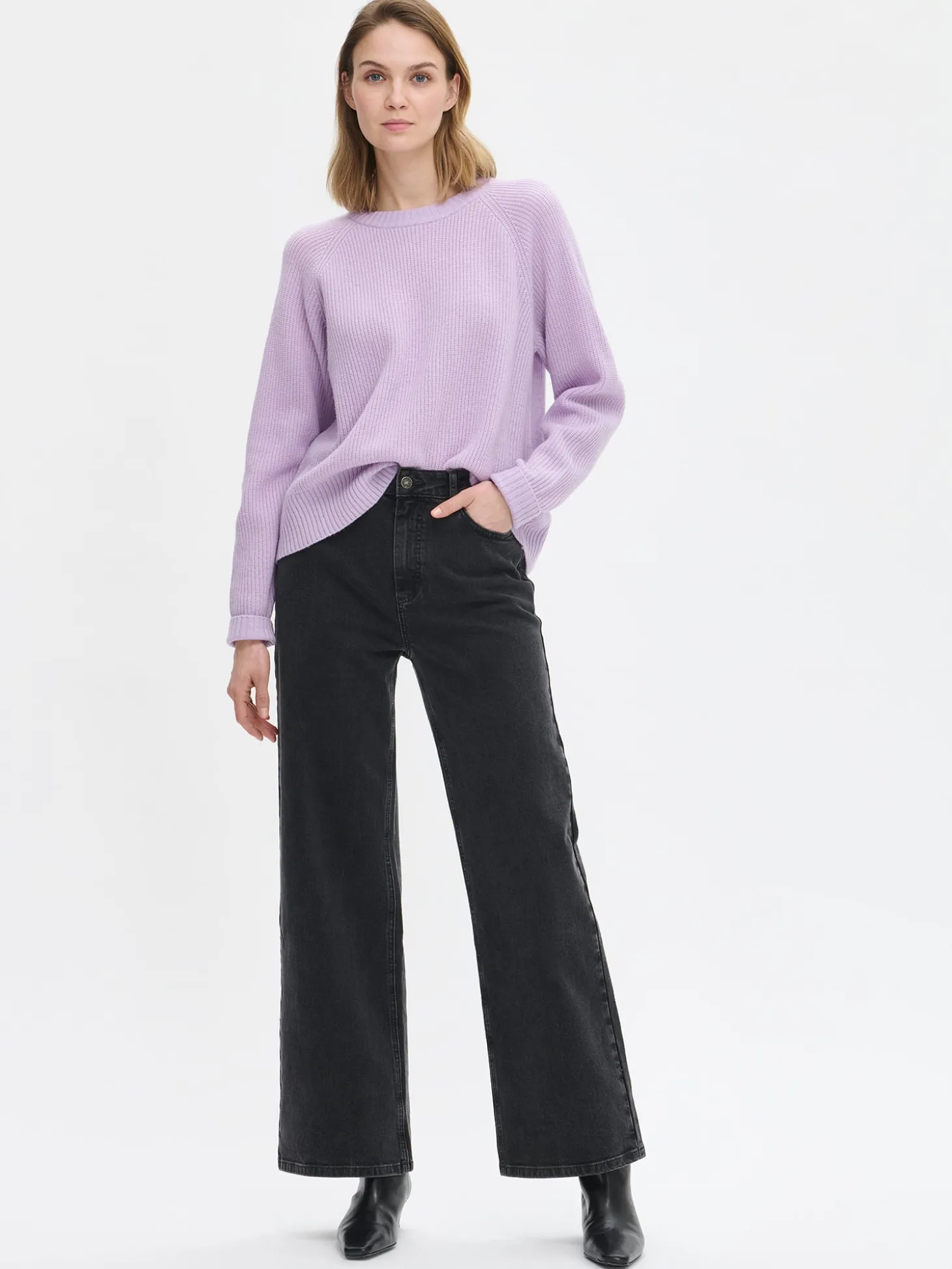 Naisten lämmin ja pehmeä lila Pamela-neulepusero pitkillä hihoilla. Kaunis lila neulepaita on syksyn suosikkivaate. Neulepuserossa pyöreä pääntie ja täyspitkät raglanhihat. Neulepuseron pituus koossa M on noin 60 cm. Neulepusero on puolipatenttineulosta. Neulos on pehmeän ja miellyttävän tuntuista villa-viskoosi-polyamidi sekoitetta. Tuotteen valmistuksessa on käytetty sertifioitua villaa.