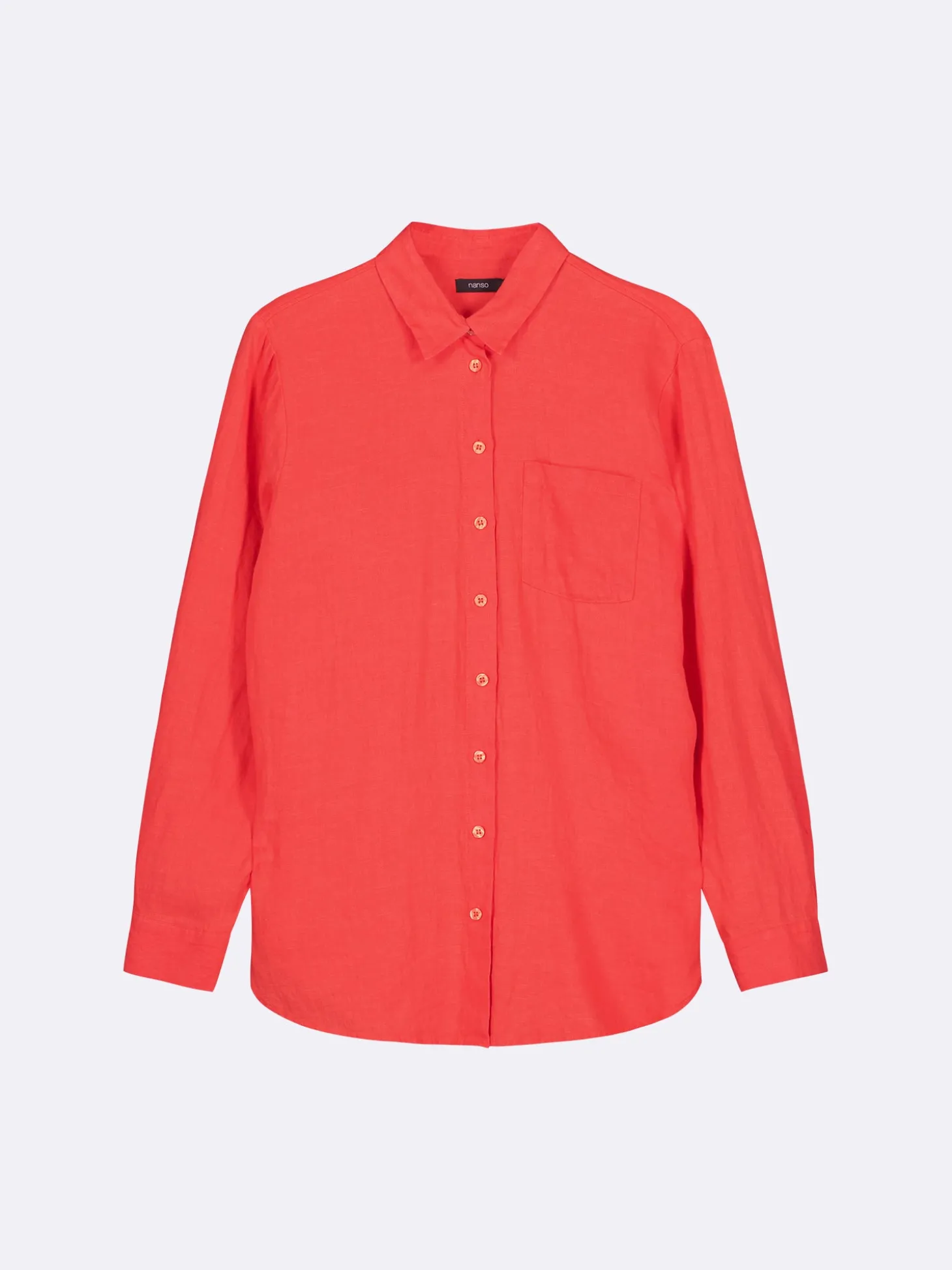 Naisten rento pitkähihainen punainen Pellava-paitapusero. Klassinen kauluspaita on todellinen vaatekaapin kulmakivi. Ajaton kauluspaita hurmaa monikäyttöisyydellään ja siksi se on varma valinta kerta toisensa jälkeen. Tyylikkäässä pellavapaidassa on napit edessä ja rintatasku. Puseron pituus koossa 38 on noin 75 cm. Materiaali on kudottua pellavakangasta, joka on kestävää ja hengittävää. Pellavalle on ominaista luonnollinen pieni rypistyminen. Tuote on esipesty tuotannossa, joten se ei kutistu ensimmäisessä pesussa.