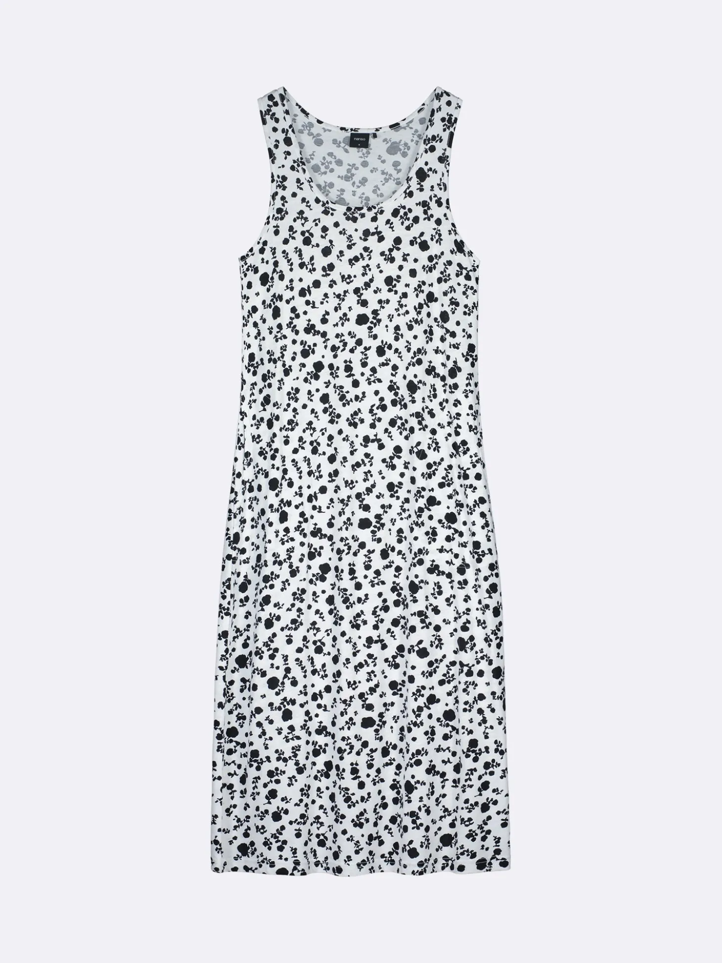 Naisten kuosillinen mustavalkoinen pitkä Roosa-yöpaita pyöreällä pääntiellä ja sivutaskuilla. Pääntie ja kädentiet on viimeistelty kantilla. Hihattoman yöpaidan pituus koossa M on noin 120 cm. Materiaali on laadukasta, iholla miellyttävän pehmeältä tuntuvaa ja helppohoitoista puuvilla-modaalia, joka pysyy hyvänä pesusta toiseen. Ihastuttava kuosi ja käytännölliset taskut tekevät tästä yöpaidasta täydellisen valinnan rentoihin hetkiin.