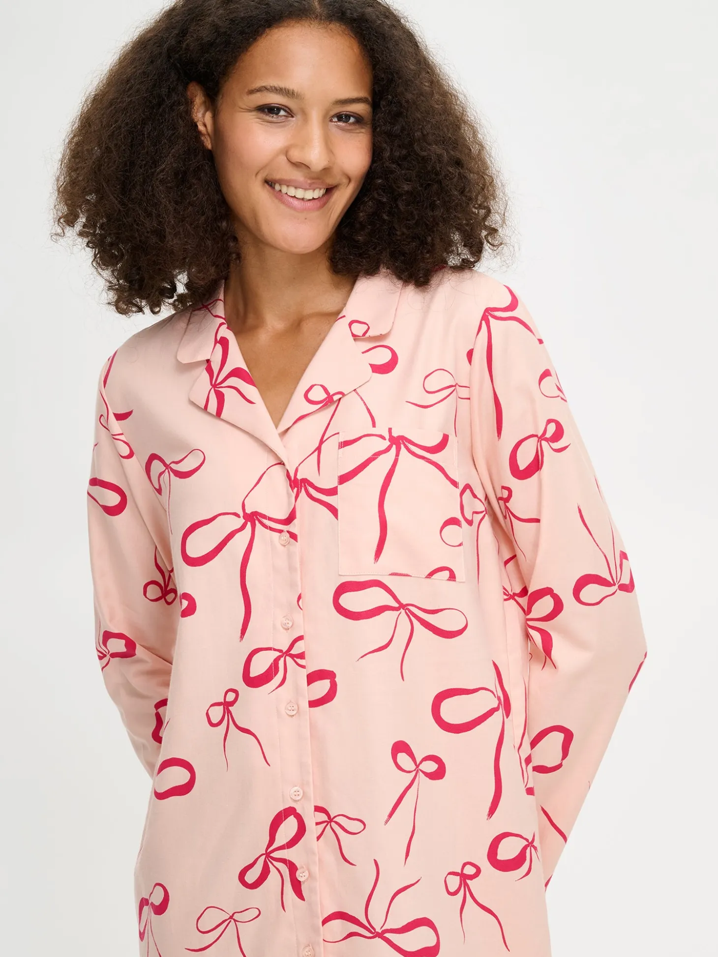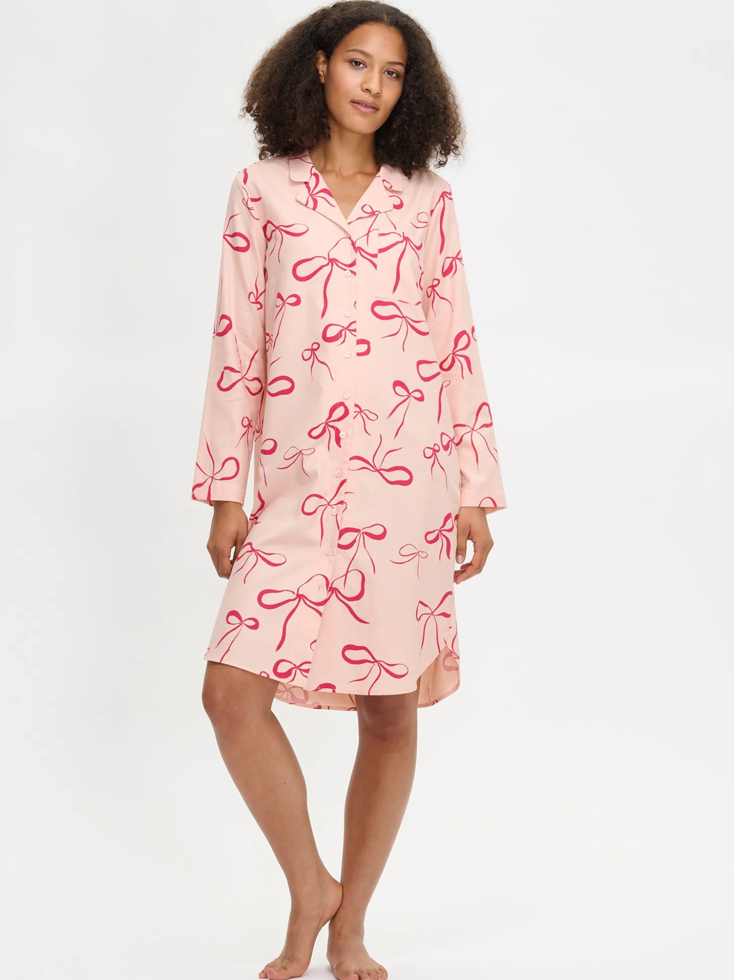 Naisten kuosillinen Rusetti-paitamekko vaaleanpunaisena. Pitkähihaisessa paitamekossa on kauniisti muotoiltu kaulus, nappilista ja pyöristetty helma. Mekon pituus koossa M on noin 105 cm. Materiaali on pehmeää ja miellyttävän tuntuista puuvillaflanellikangasta. Materiaalille on ominaista 3-5% kutistuminen ensimmäisessä pesussa.