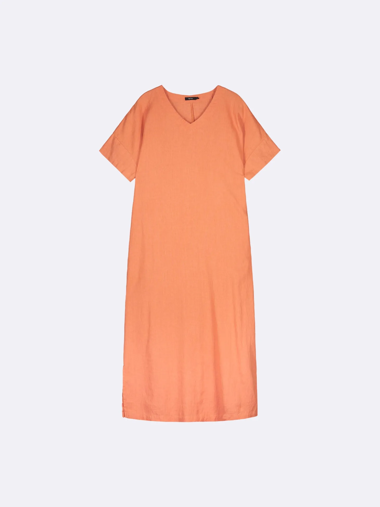 Naisten rento oranssi suoralinjainen Sarastus-pellavamekko sivuhalkioilla. Lyhythihaisessa kaftaanissa on V-pääntie ja sivutaskut. Mekon pituus koossa M on noin 130 cm. Materiaali kudottua pellavakangasta, joka on kestävää ja hengittävää. Pellavan kevyt ja viileä tuntu tekevät mekosta täydellisen valinnan rentoihin kesäpäiviin ja kiireettömiin hetkiin kotona. Pellavalle on ominaista luonnollinen pieni rypistyminen. Tuote on esipesty tuotannossa, joten se ei kutistu ensimmäisessä pesussa.