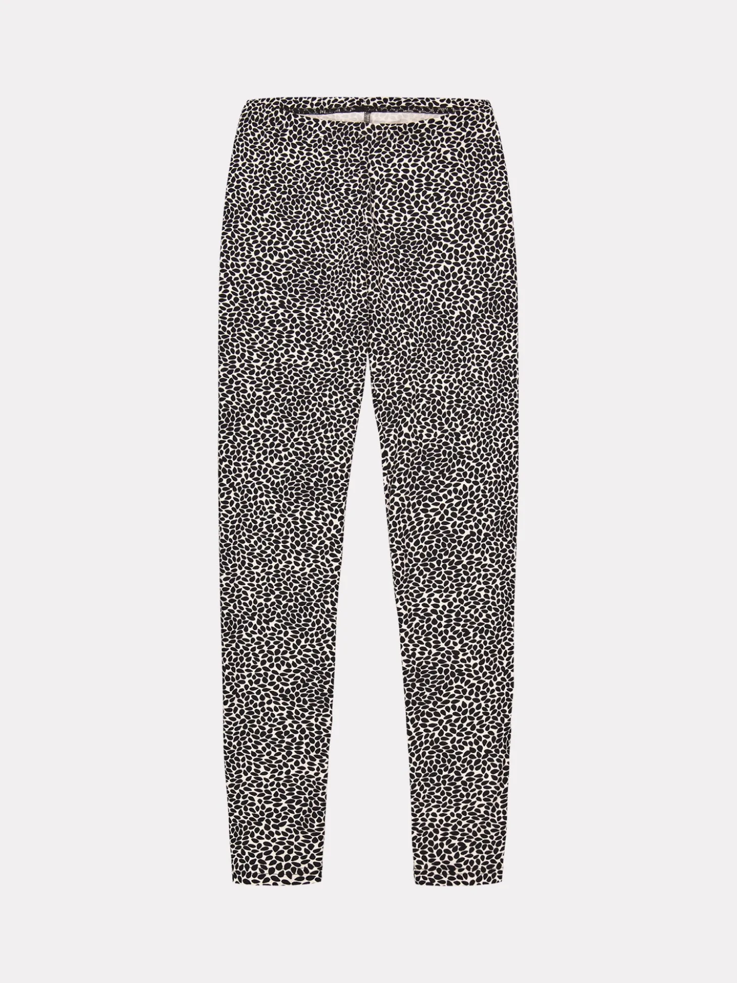 Naisten kuosilliset beiget Sesam-leggingsit. Joustavat leggingsit ovat mukavat päällä. Vyötäröllä on saumattu kuminauha ja lahkeet ovat täyspitkät. Materiaali on miellyttävää ja joustavaa puuvilla-elastaani neulosta.
