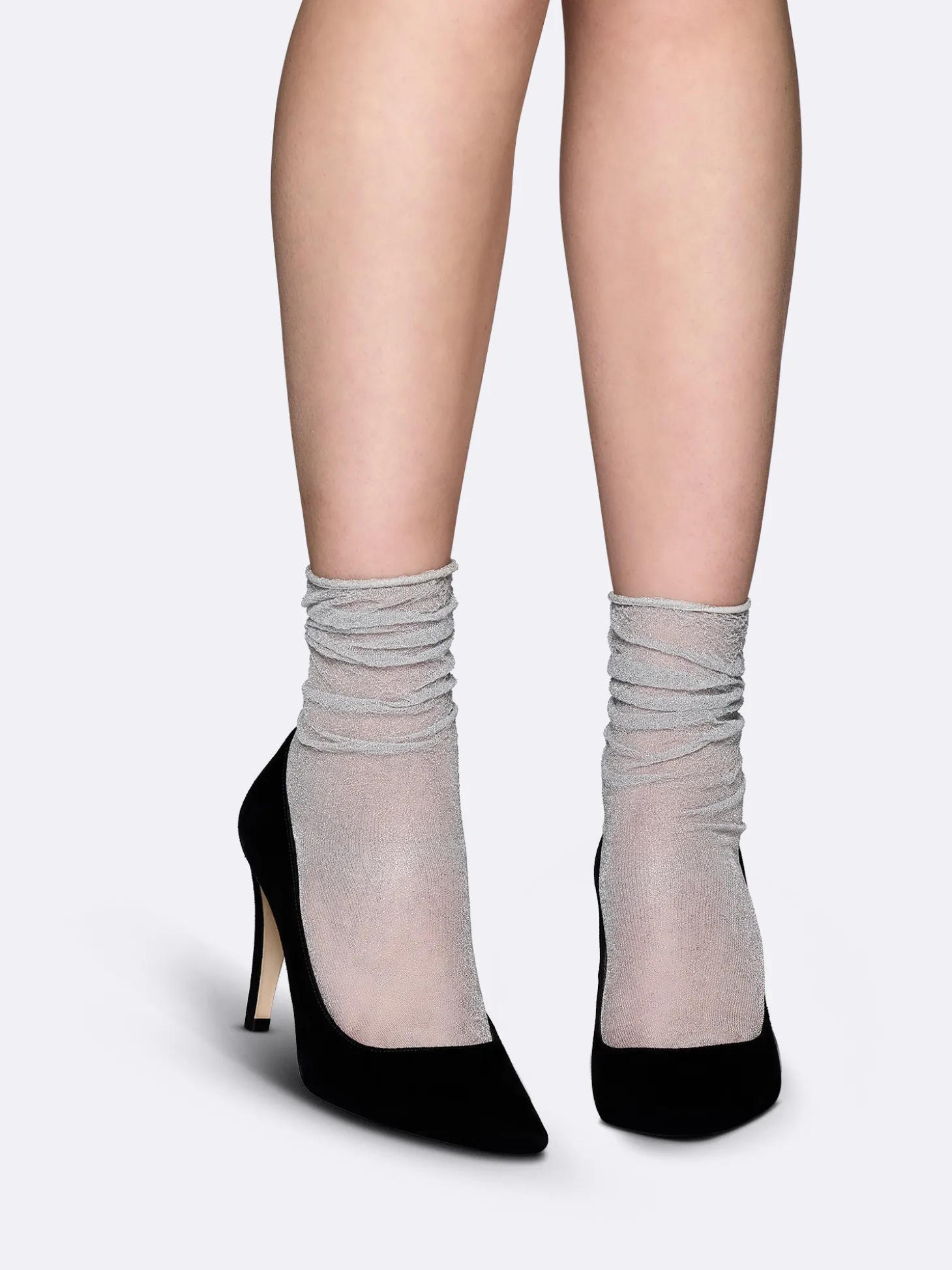 Voguen naisten ohuet kimaltavat korkeavartiset nilkkasukat. Näyttävät ja tyylikkäät sukat ovat täydelliset juhlaan sekä tuomaan säihkettä arjen pukeutumiseen.