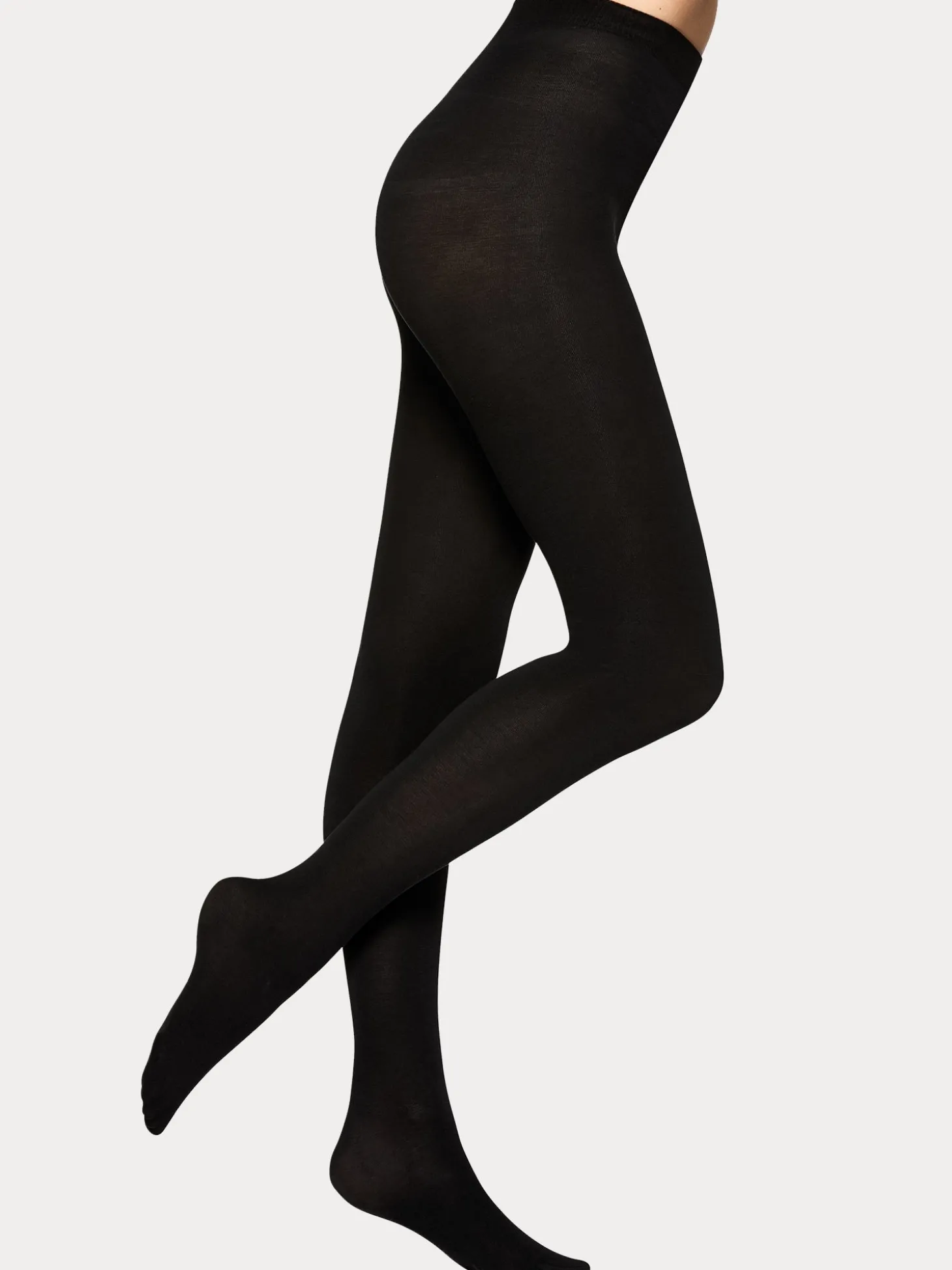Pehmeät, mustat luomupuuvillasukkahousut. Mukavat, silkkimäiset ja miellyttävän tuntuiset puuvillasukkahousut jokapäiväiseen käyttöön. 3D neulos antaa täydellisen istuvuuden ja käyttömukavuuden. Materiaalina ympäristöystävällinen luomupuuvilla jonka viljelyssä ei käytetä lainkaan ympäristölle haitallisia kemikaaleja ja lannoitteita.