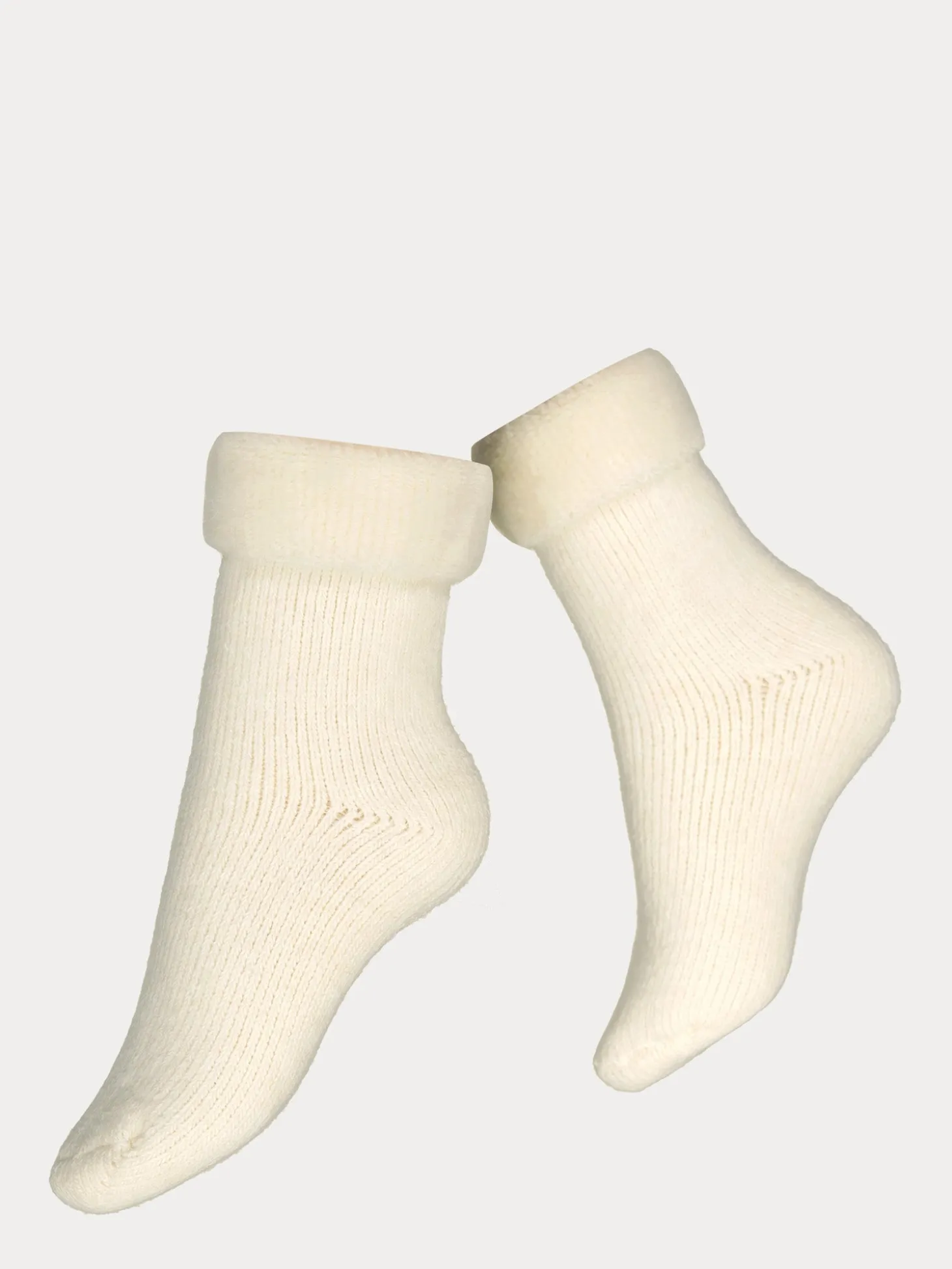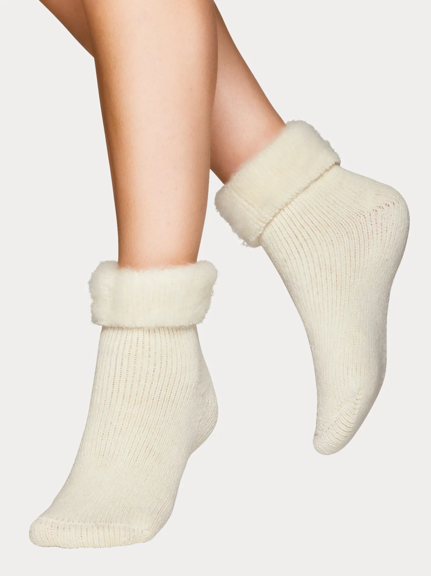 Voguen ihanan pehmeät luonnonvalkoiset alpakkavillasekoitesukat. Pörröiset kotisukat ovat ihanteelliset leppoisaan kotona oleskeluun.