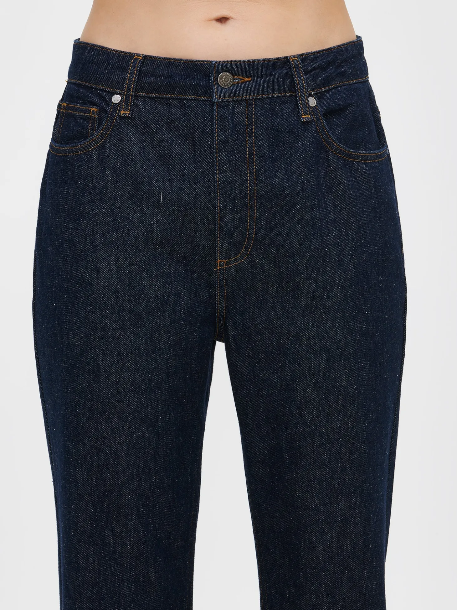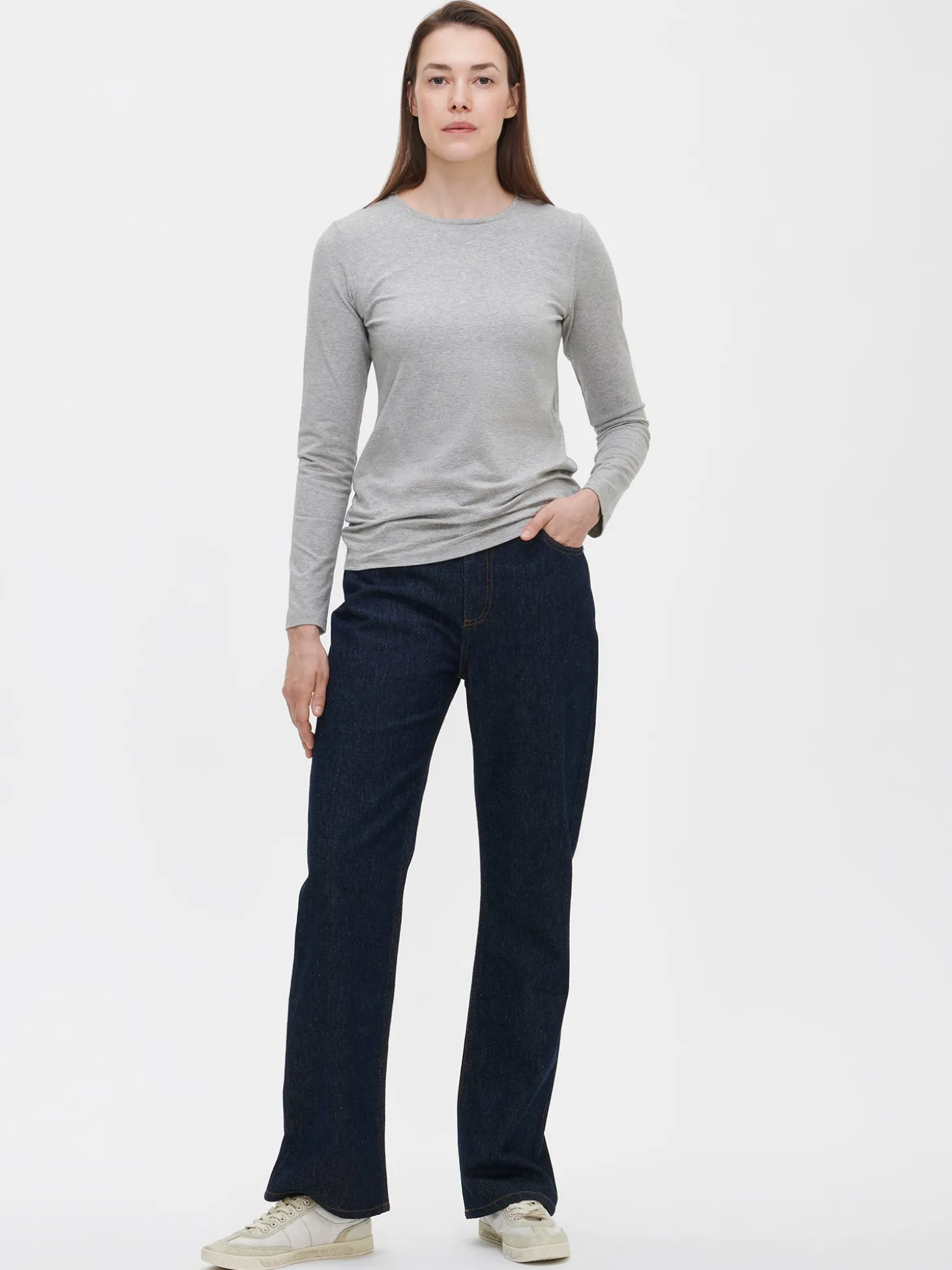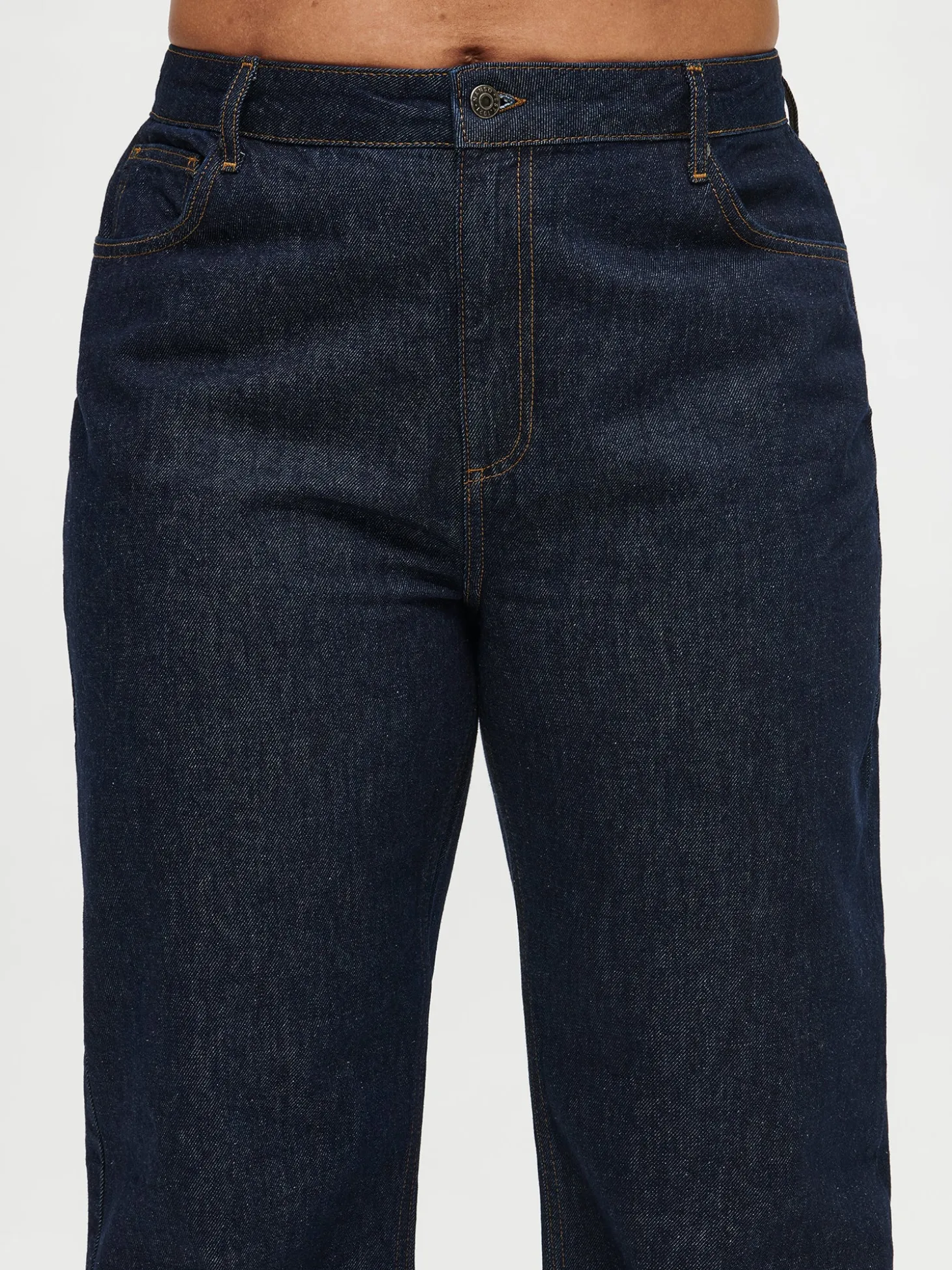 Naisten rennot tummansiniset Suora-farkut, joissa on normaalikorkuinen vyötärö. Klassiset ja mukavat suorat farkut ovat monen asukokonaisuuden runko. Hyvin istuvat farkut ovat vaatekaapin luottovaate, johon on aina ihanaa pukeutua. Suora-farkuissa on vyötärökaitale, edessä vetoketju ja nappikiinnitys. Farkuissa on taskut edessä sekä takana ja täyspitkät suorat lahkeet. Farkkujen lahkeen sisäpituus koossa 38 on noin 80 cm. Materiaali on kudottua twillsidoksista puuvilla-denimkangasta. 20% kankaaseen käytetystä puuvillasta on kierrätettyä.