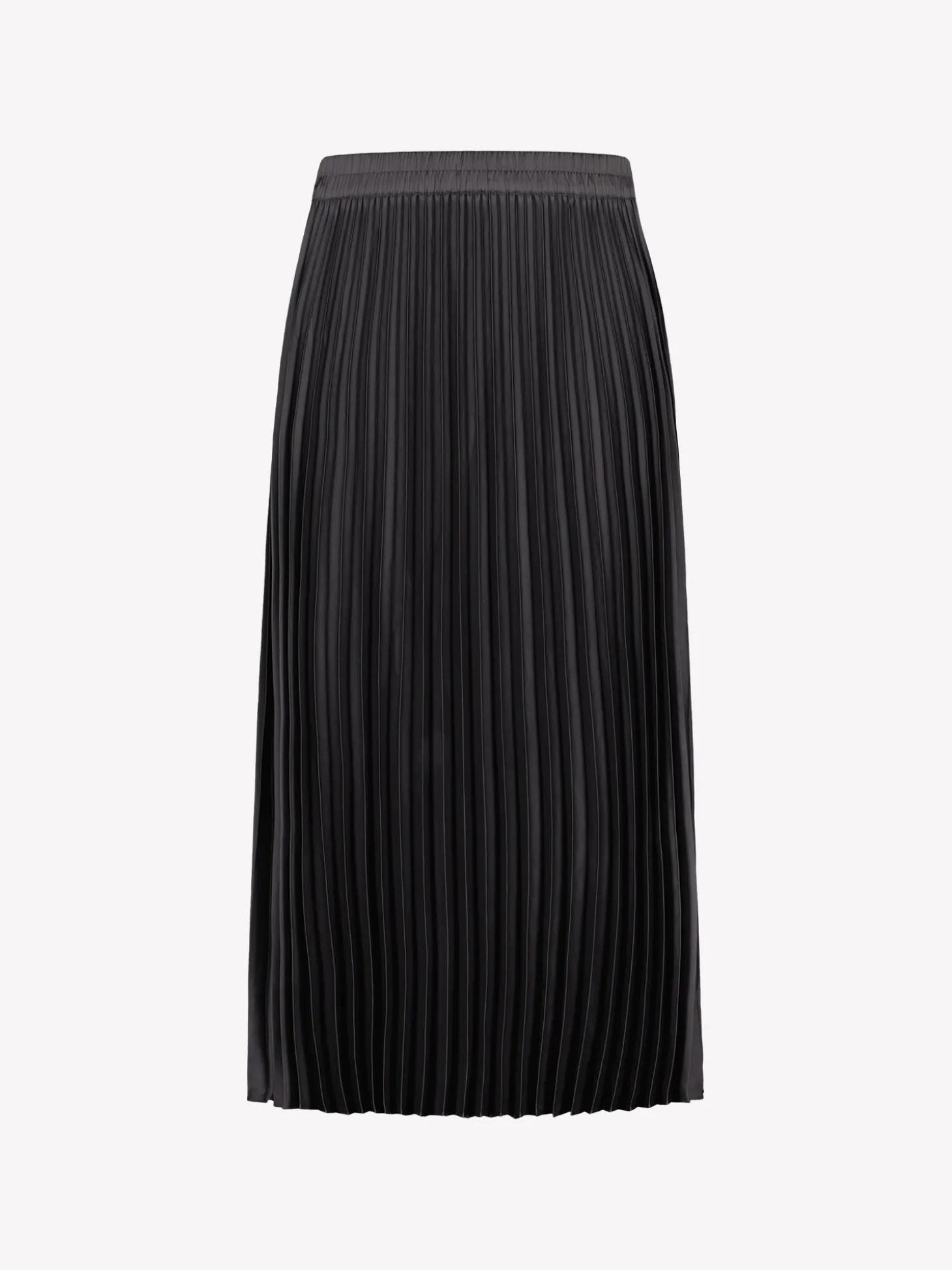 Naisten kauniisti laskeutuva tummanharmaa Taite-hame. Tyylikäs Taite-hame muuntuu saumattomasti arjesta juhlaan erilaisten asusteiden ja yläosien avulla. Hameessa on kaunis kapea pliseeraus, joustava vyötärö ja vuori. Hameen pituus koossa 38 on noin 85 cm. Materiaali on helppohoitoista polyesteria ja hameen vekit pysyvät siistinä käytössä.