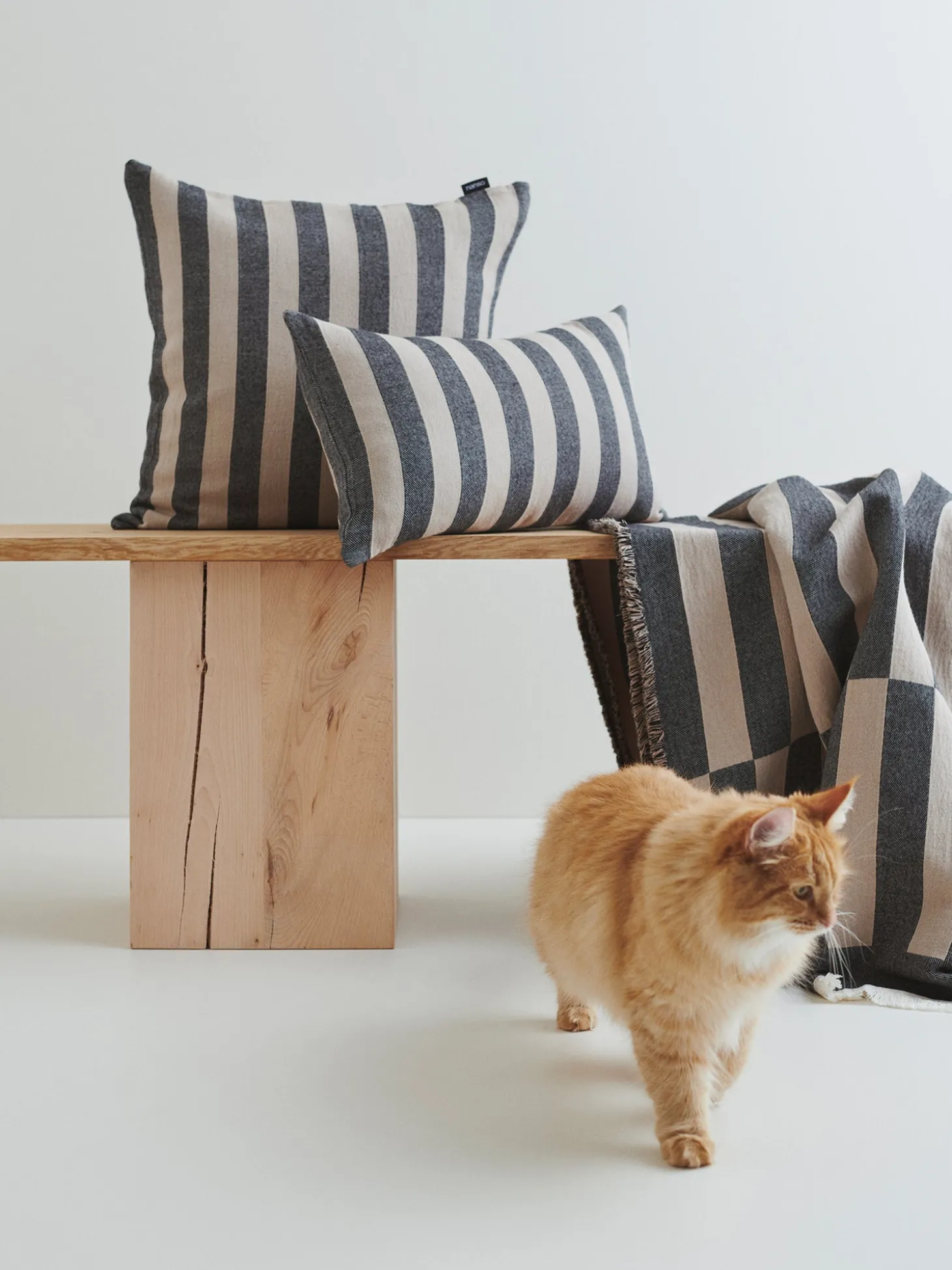 Ihastuttava raidallinen musta-beige Tie- sisustustyynyliina on valmistettu puuvillasta ja se on tyylikäs sekä aikaa kestävä valinta. Kuvio on kudottu jacquard-tekniikalla. Tyynyliinan avulla saat arjen sisustukseen helposti vaihtelua. Tyynyliinassa on alhaalla vetoketju. Sisustustyynyliinan koko on 50 cm x 50 cm.