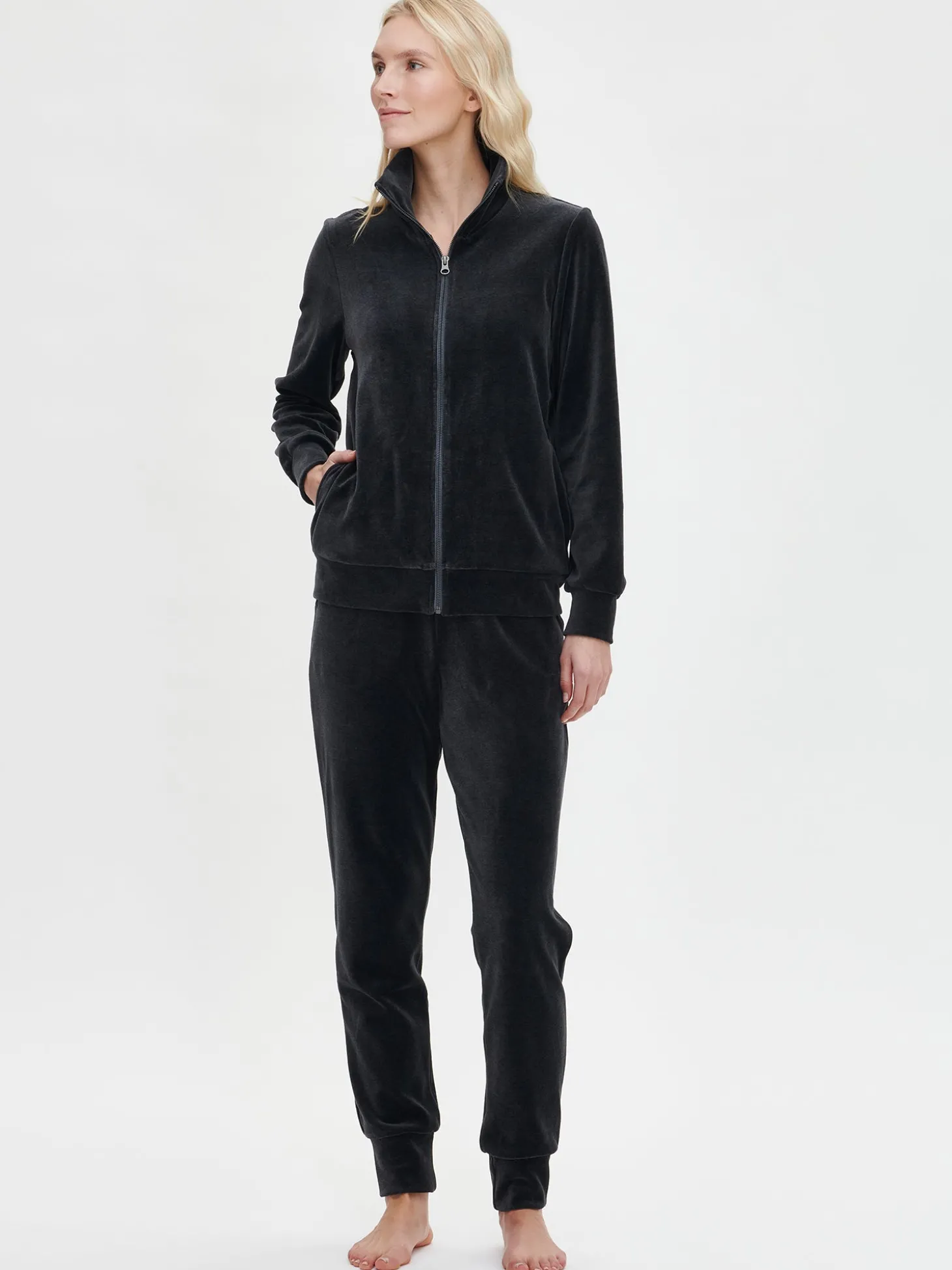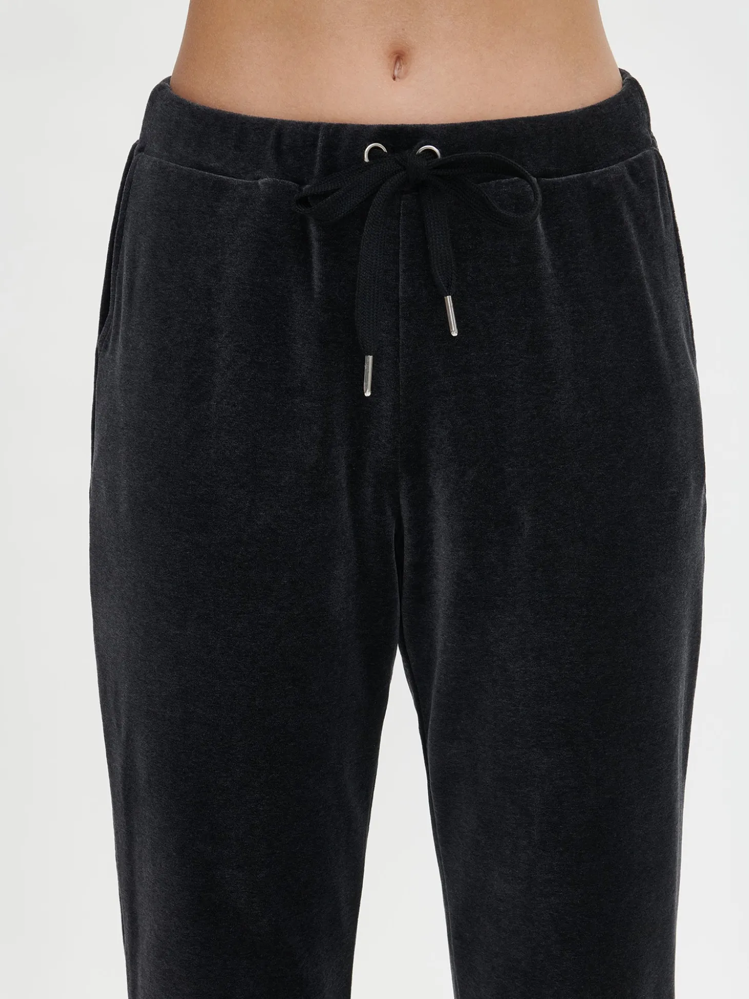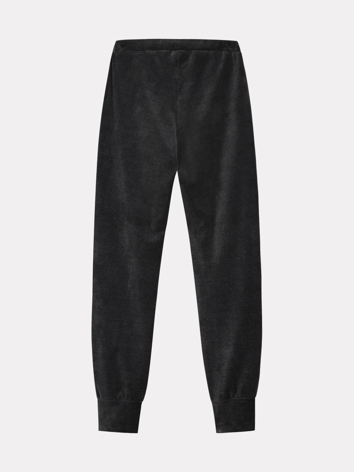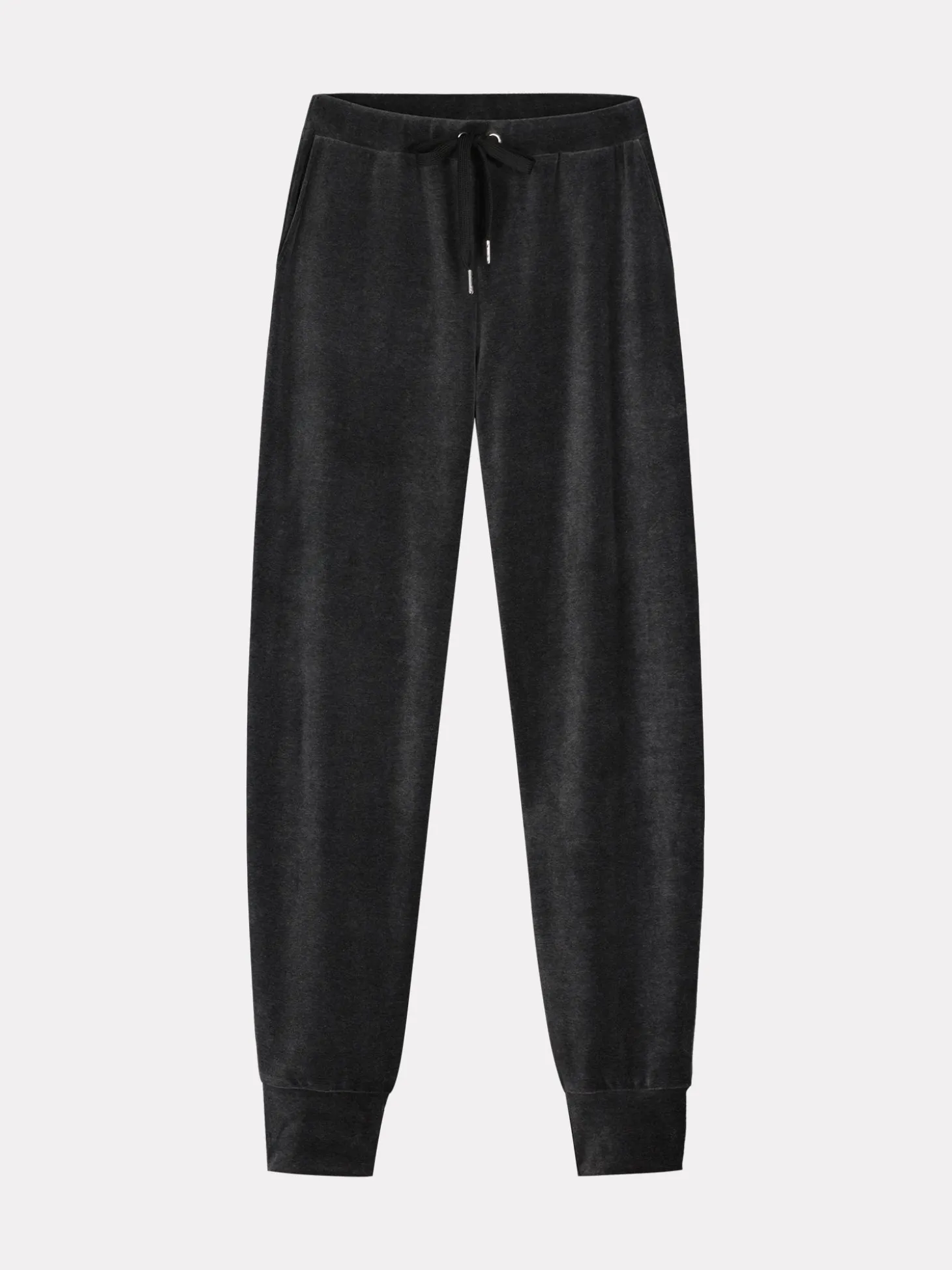 Naisten rennot meleeratut harmaat Veluuri-housut taskuilla. Vyötäröllä on mukava kuminauharakenne kiristysnauhalla. Veluurihousujen sisäpituus on noin 78 cm. Materiaali on laadukasta ja pehmeää puuvilla-polyesteriveluuria. Materiaalille on ominaista 3-5% kutistuminen ensimmäisessä pesussa.