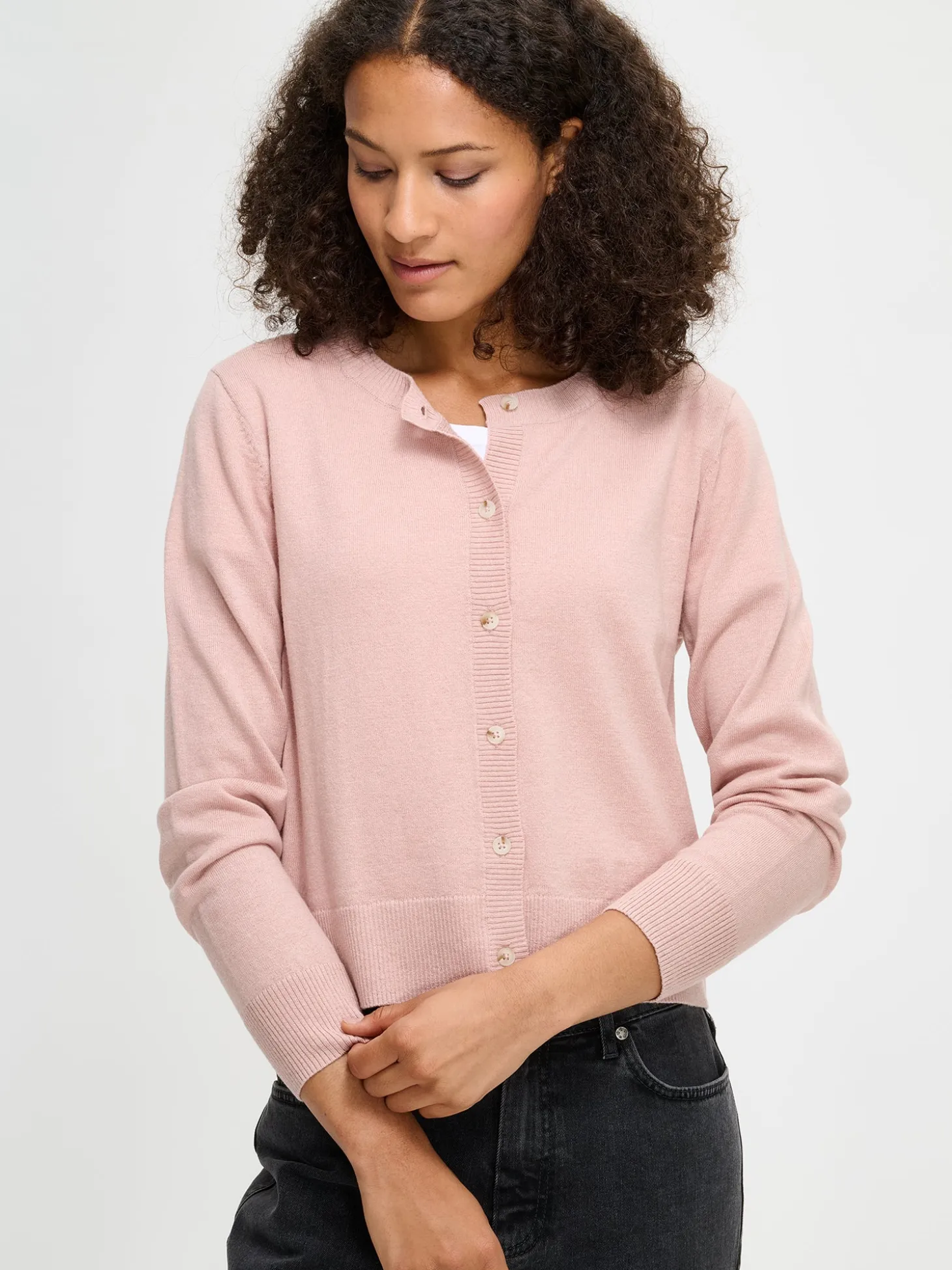 Naisten vaaleanpunainen Villis-neuletakki. Mukava neuletakki on neulottu laadukkaasta merinovillan ja puuvillan sekoitteesta. Neuletakissa on edessä napitus sekä resori helmassa ja hihansuissa. Neuleen suorat hihat ovat täyspitkät. Neuletakin pituus koossa M on noin 55 cm. Tuotteen valmistuksessa on käytetty sertifioitua mulesing-vapaata merinovillaa. Neuleen hoito-ohjeet löydät