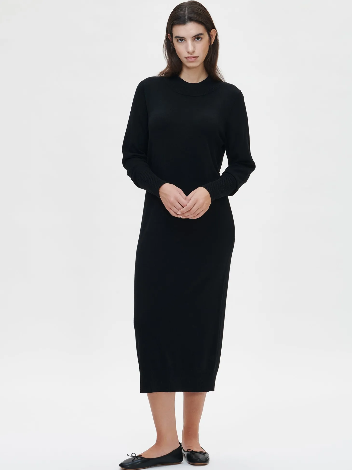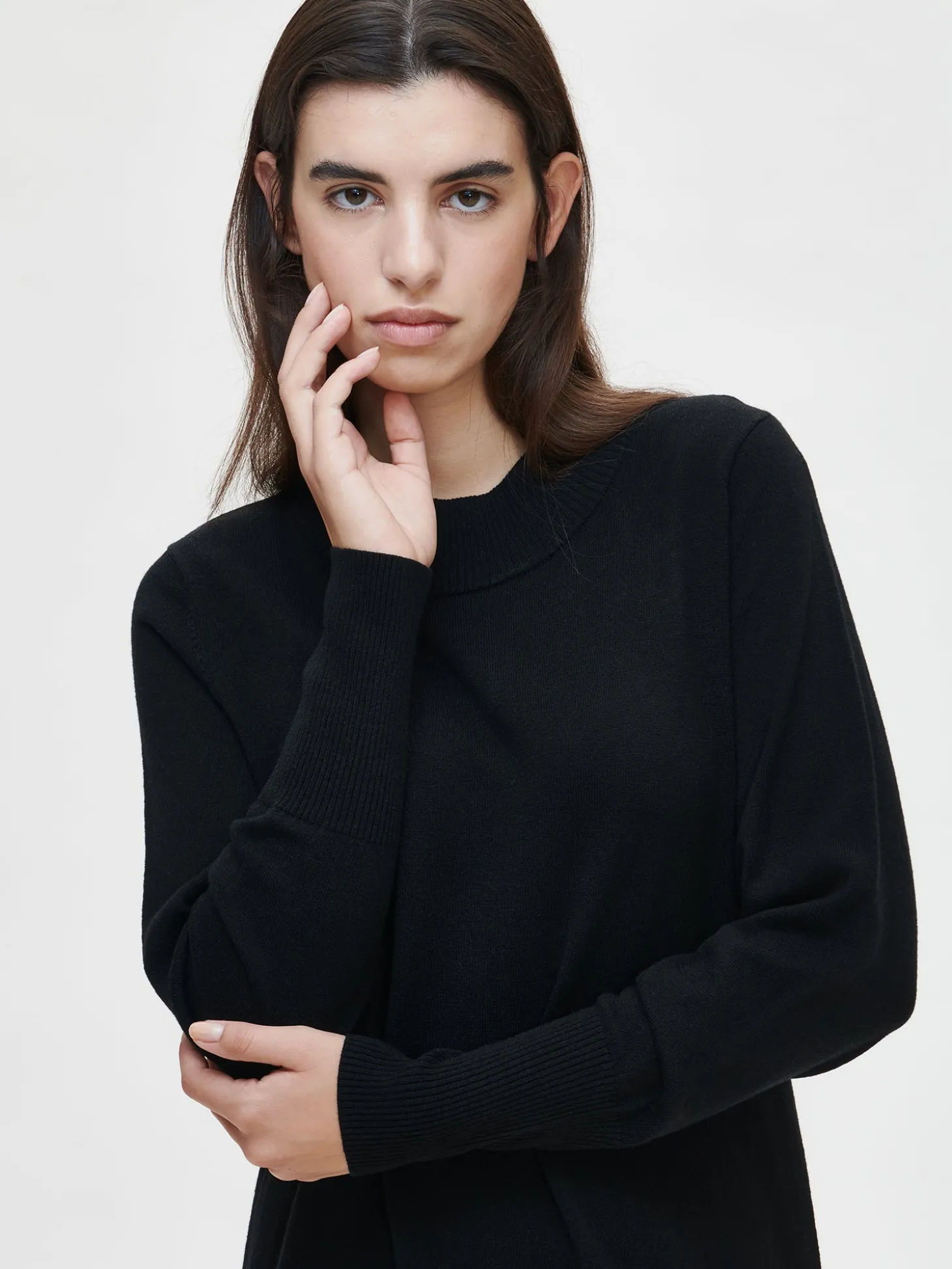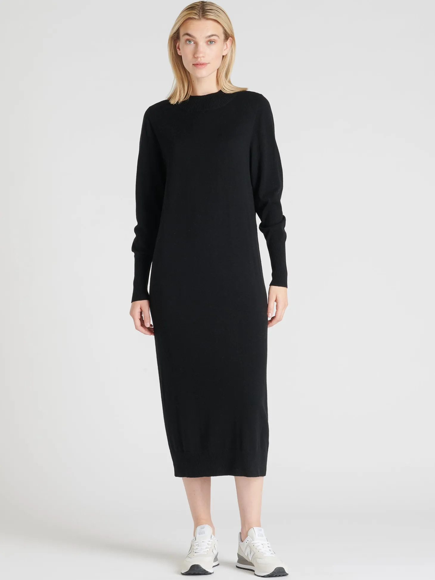 Naisten musta pitkä Villis-neulemekko. Klassinen suoralinjainen neulemekko on luottovaate syksystä talveen. Kauniissa neulemekossa on pystykaulus ja täyspitkät hihat. Mekossa on resori helmassa ja hihansuissa. Mekon pituus koossa M on noin 120 cm. Materiaali on laadukasta merinovillan ja puuvillan sekoitetta. Tuotteen valmistuksessa on käytetty mulesing-vapaata merinovillaa. Neuleen hoito-ohjeet löydät