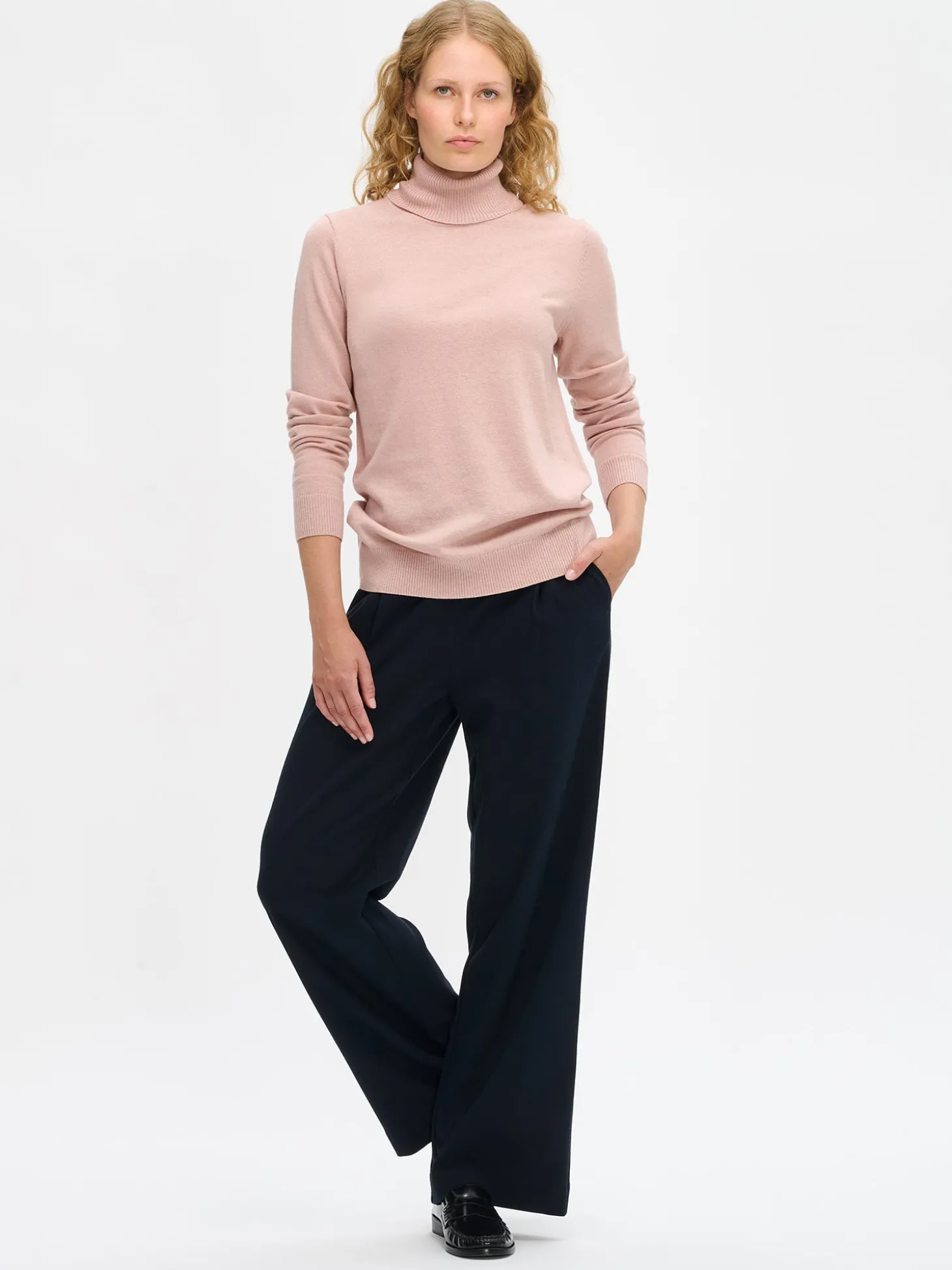 Naisten yksinkertaisen tyylikäs ja kevyt vaaleanpunainen Villis-neulepusero poolokauluksella. Laadukkaasta merinovillan ja puuvillan sekoitteesta muotoonneulotussa puserossa on täyspitkät hihat. Puseron pituus koossa M on noin 65 cm. Tuote on vesipestävä eikä nyppyynny helposti. Tuotteen valmistuksessa on käytetty sertifioitua mulesing-vapaata merinovillaa. Pehmeä ja hengittävä neule, joka yhdistää ajattoman tyylin ja arjen mukavuuden. Neuleen hoito-ohjeet löydät .