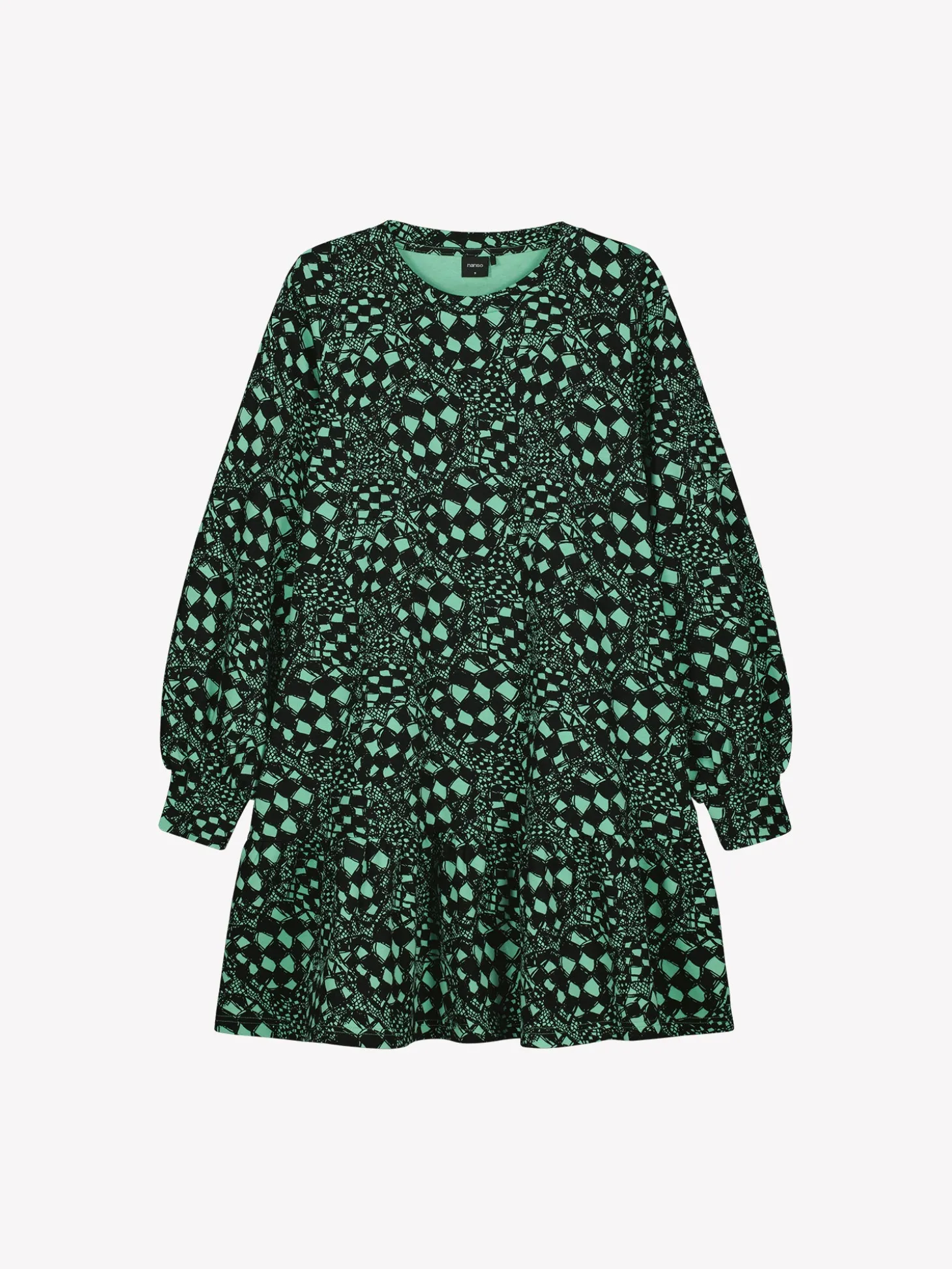 Naisten rento vihreä Virkkuu-mekko. Malliltaan rennon tyylikäs mekko on mukava päällä, ja siksi se on ehdoton suosikkivaate. Lyhyessä mekossa on pyöreä pääntie, sivuissa taskut, helmassa poimutus ja kauniisti hihansuihin poimuttuvat täyspitkät hihat. Mekon pituus koossa M on noin 90 cm. Materiaali on miellyttävän tuntuista, paksumpaa interlock-neulosta.