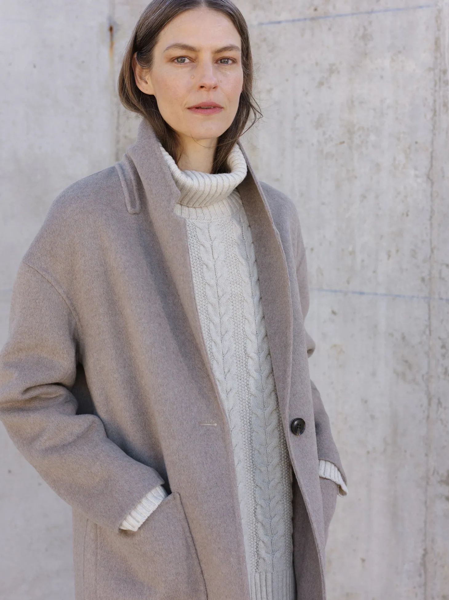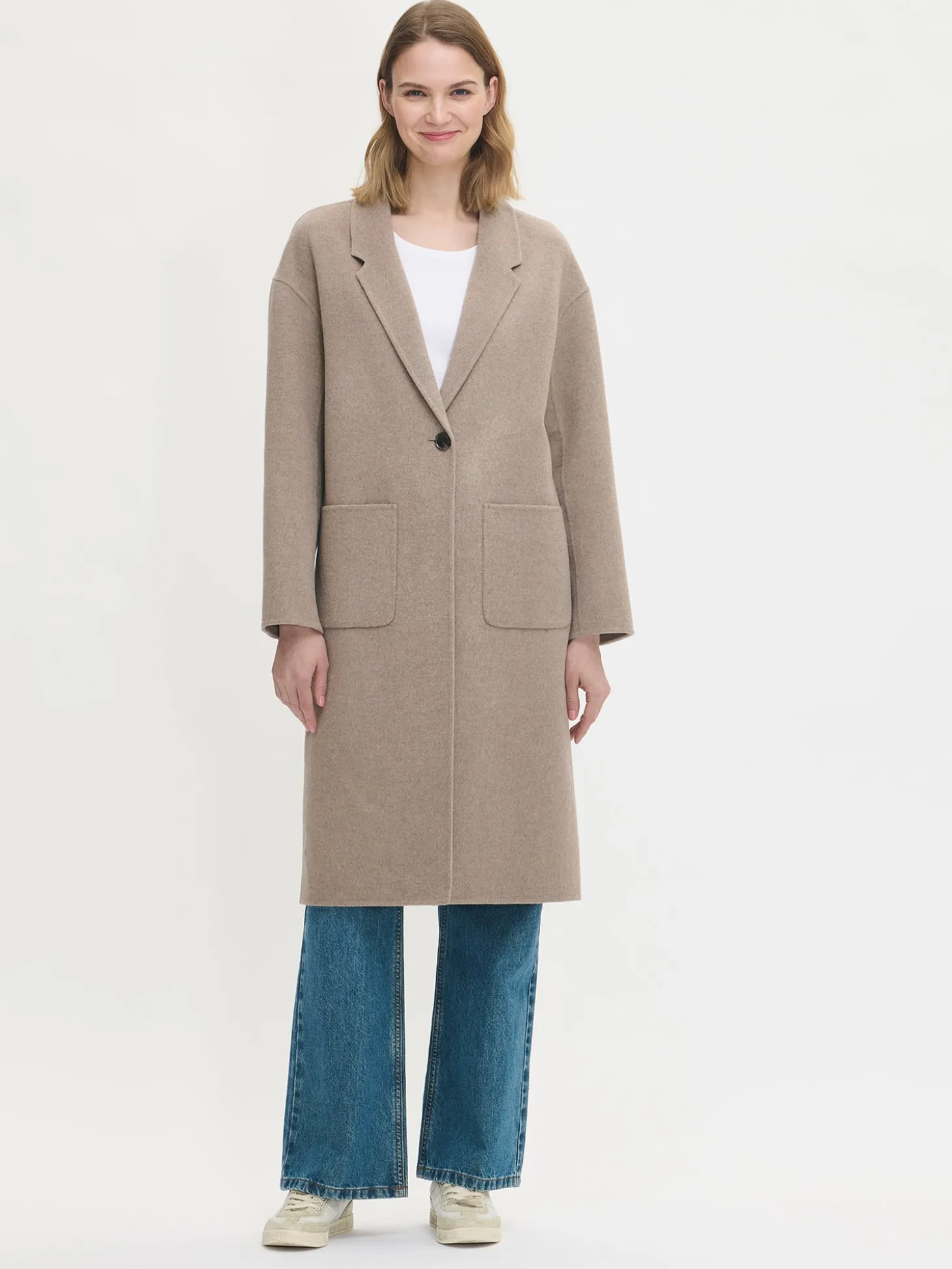 Tyylikäs ja klassinen beige Ylle-villakangastakki on täydellinen valinta, kun haluat pukeutua sekä mukavasti että elegantisti. Laadukkaasta villa-polyesterisekoitteesta valmistettu takki tuntuu miellyttävältä yllä ja kestää käyttöä vuodesta toiseen. Vuorittoman villakangastakin saumat ovat kauniisti sisältä ja ulkoa huolitellut. Takissa on edessä nappikiinnitys ja käytännölliset päällitaskut. Suoralinjainen leikkaus ja takahalkio takaavat hyvän istuvuuden ja liikkumavapauden. Takin pituus koossa M on noin 110 cm, joka tekee siitä täydellisen yhdistettävän niin housujen kuin mekkojen kanssa – kerrospukeutumista unohtamatta.